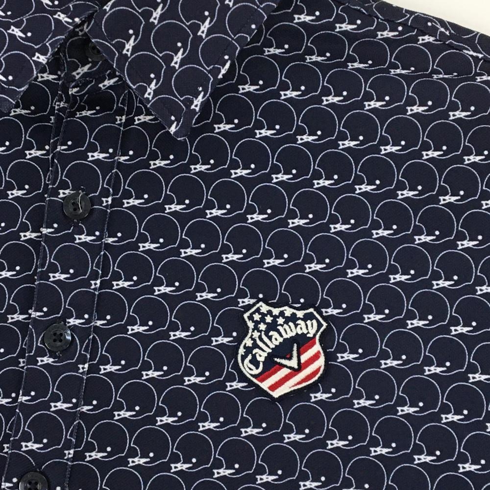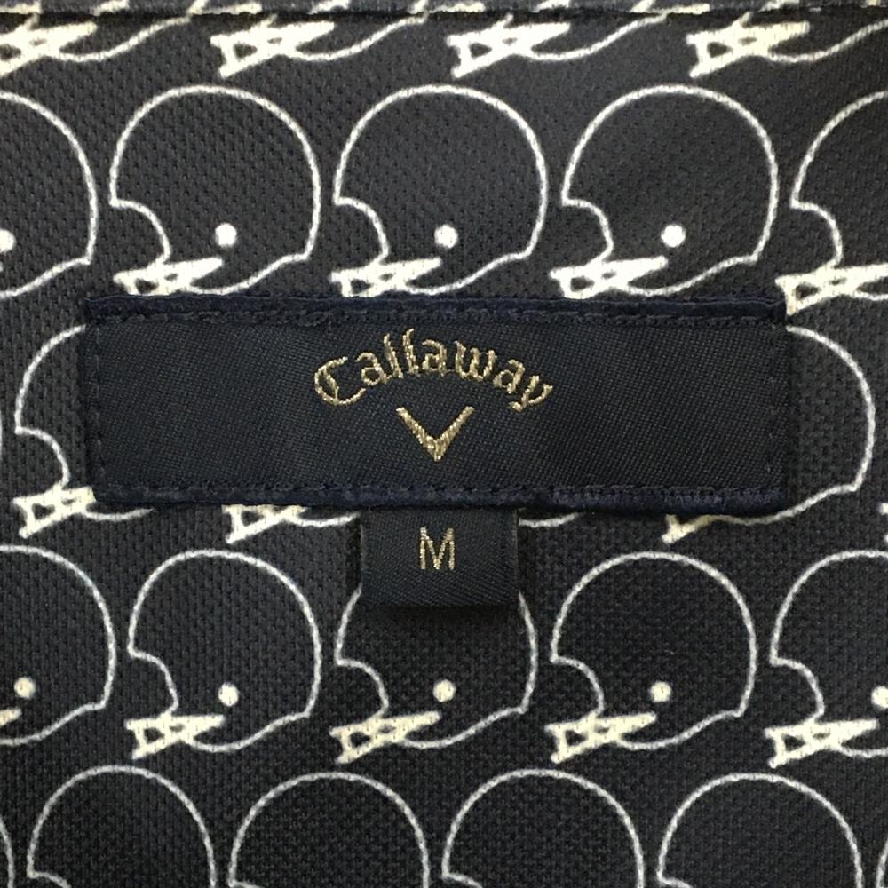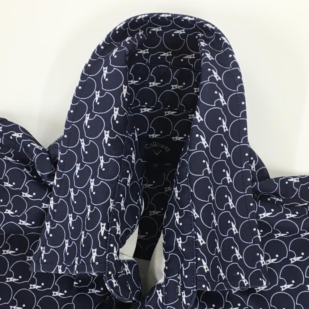 キャロウェイ 半袖ポロシャツ ネイビー×白 ヘルメット柄 ロゴワッペン メンズ M ゴルフウェア Callaway