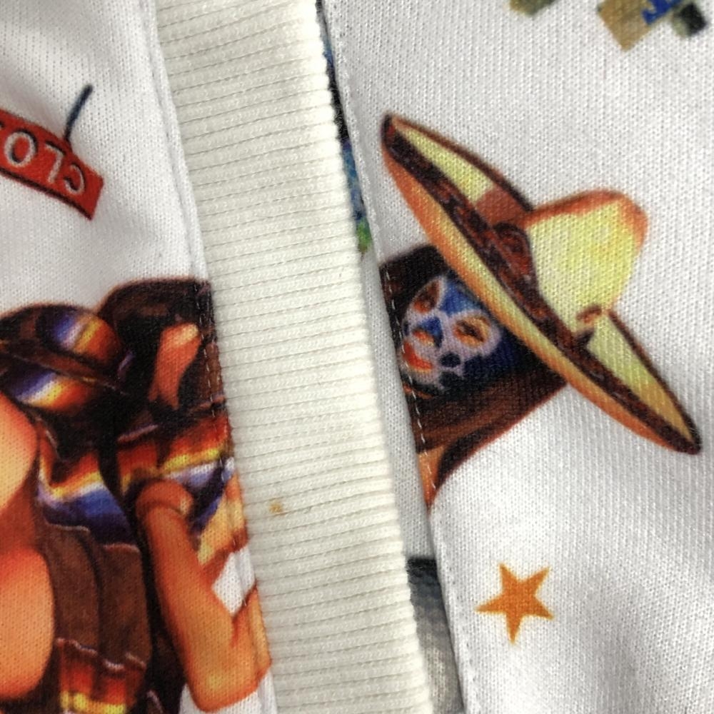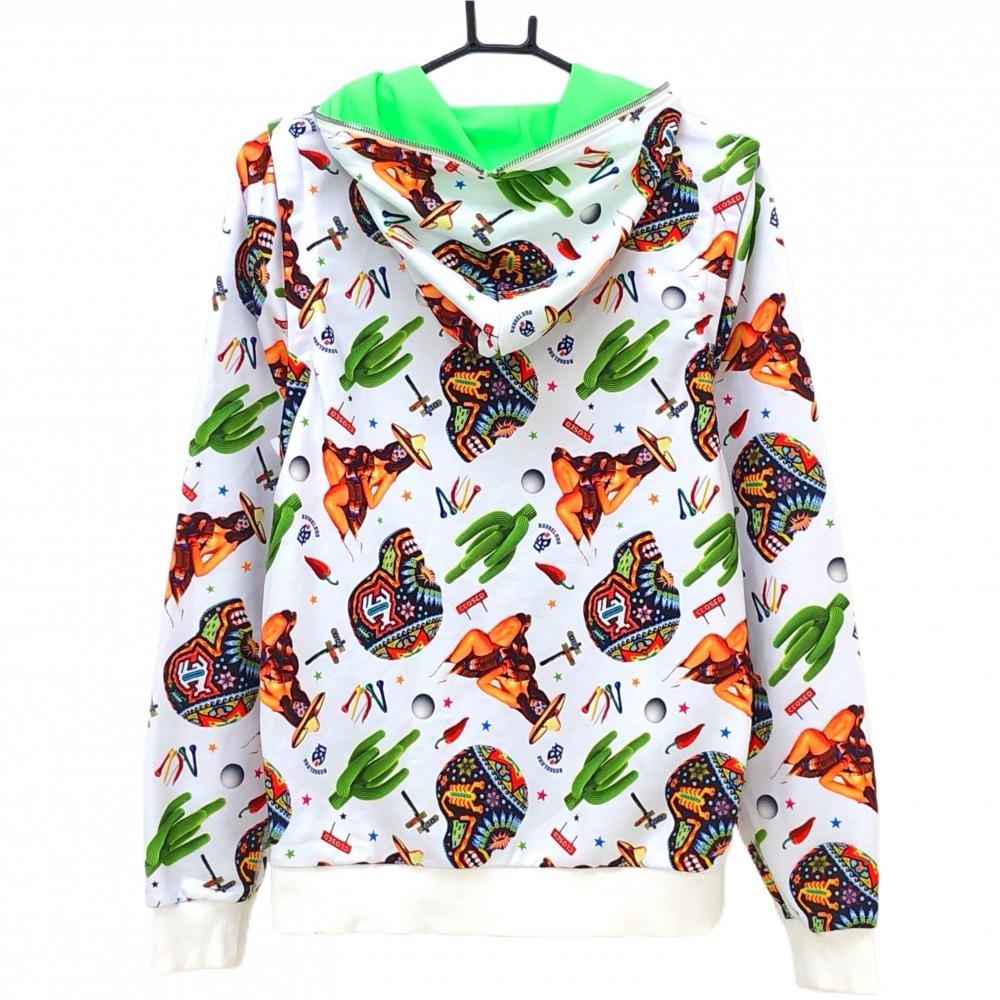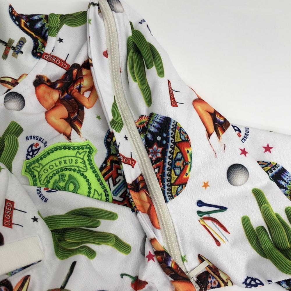 【美品】ラッセルノ 2WAYジップパーカー 白×マルチカラー スカル・サボテン総柄 袖着脱可 メンズ 4(M) ゴルフウェア RUSSELUNO