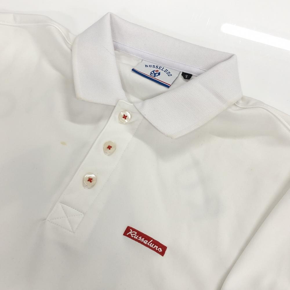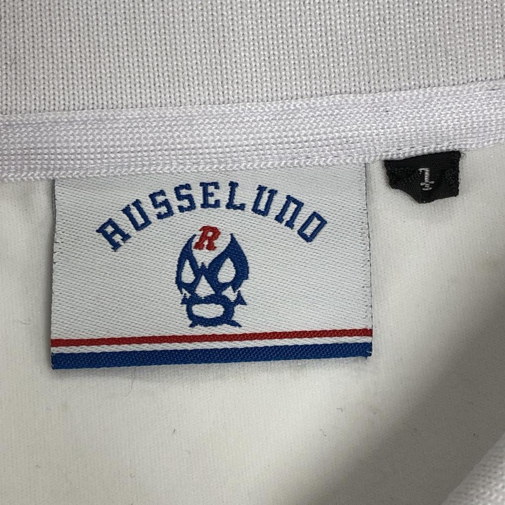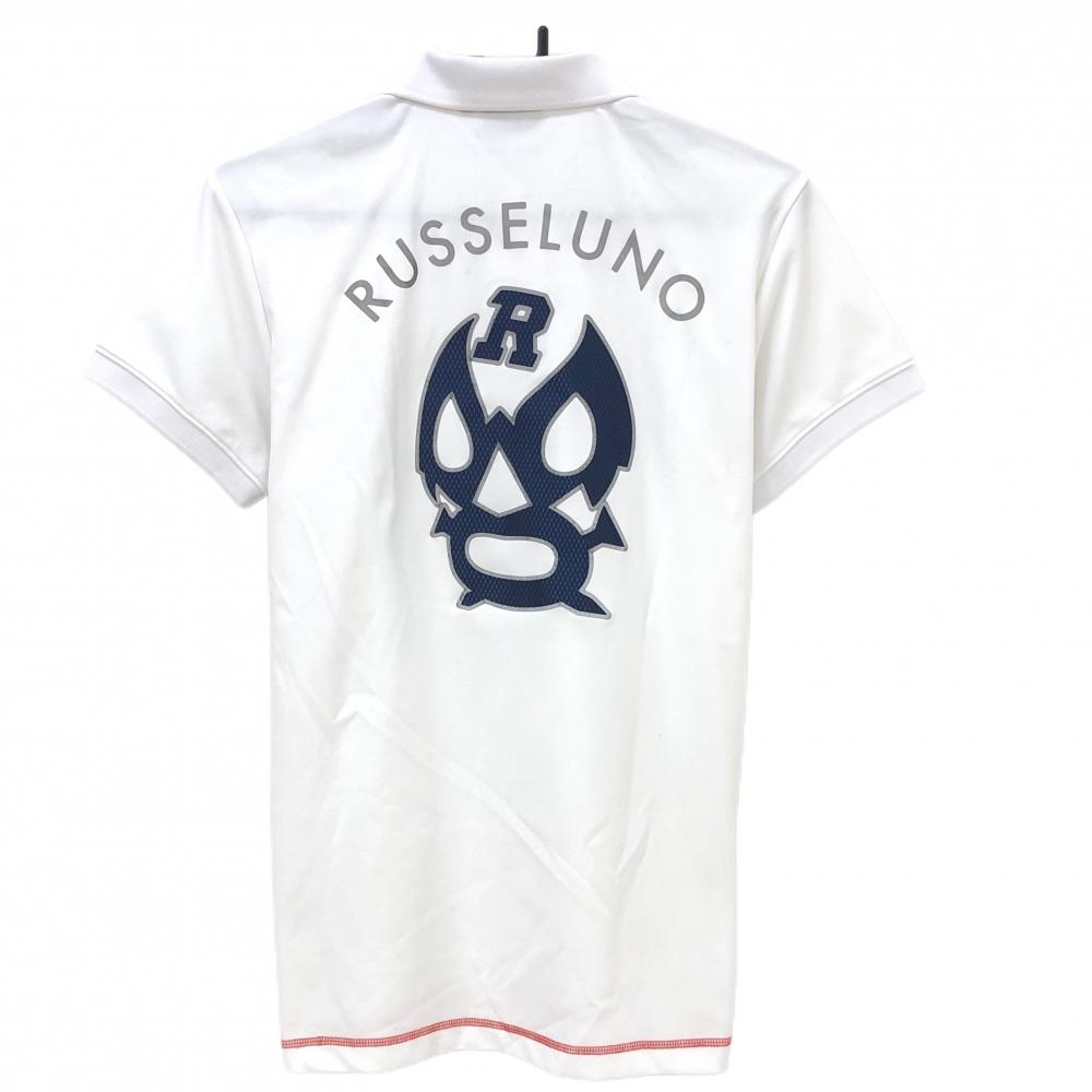 【美品】ラッセルノ 半袖ポロシャツ 白×ブルー 背面ルチャマスク メンズ 4(M) ゴルフウェア RUSSELUNO