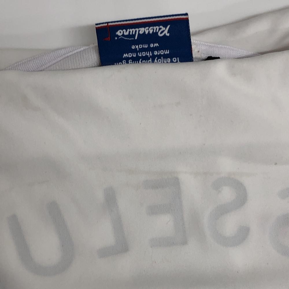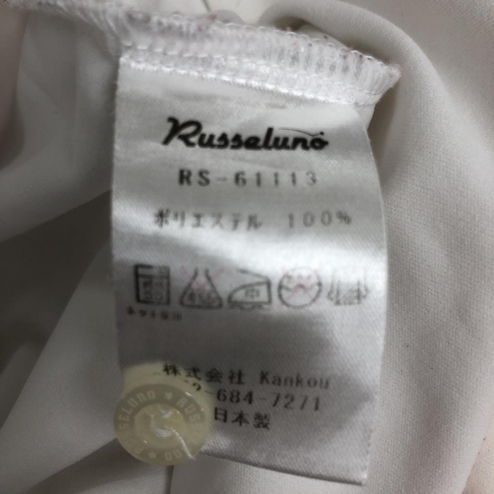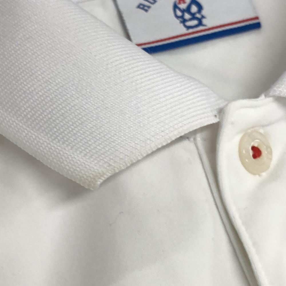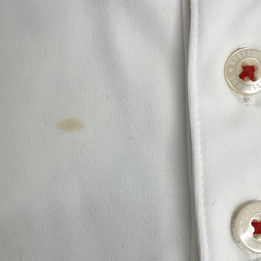 【美品】ラッセルノ 半袖ポロシャツ 白×ブルー 背面ルチャマスク メンズ 4(M) ゴルフウェア RUSSELUNO