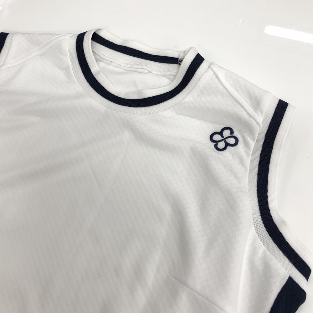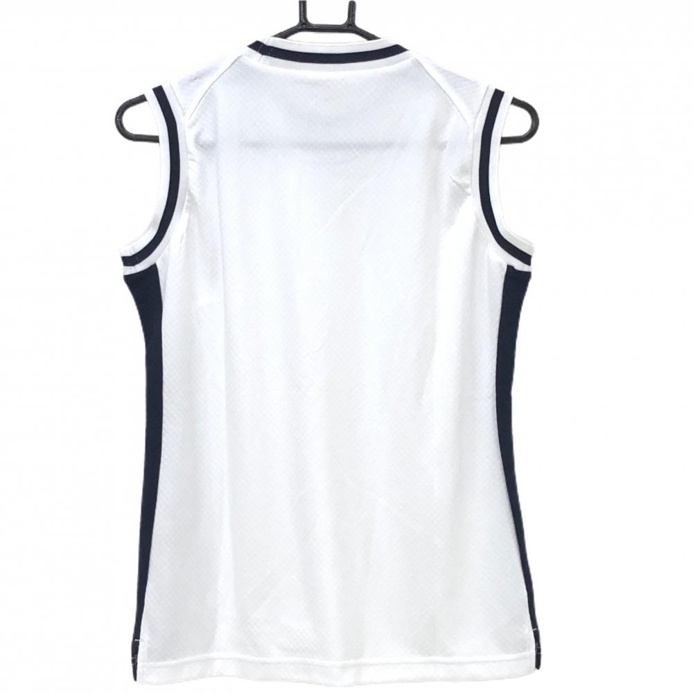 【超美品】マリクレールスポール ベスト 白×ネイビー 織生地 胸元ロゴ レディース L ゴルフウェア marie claire
