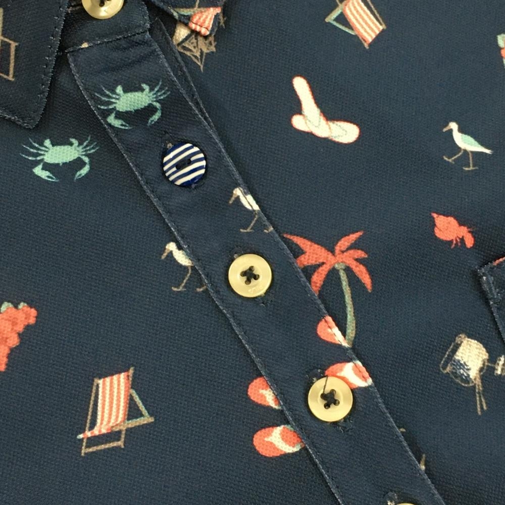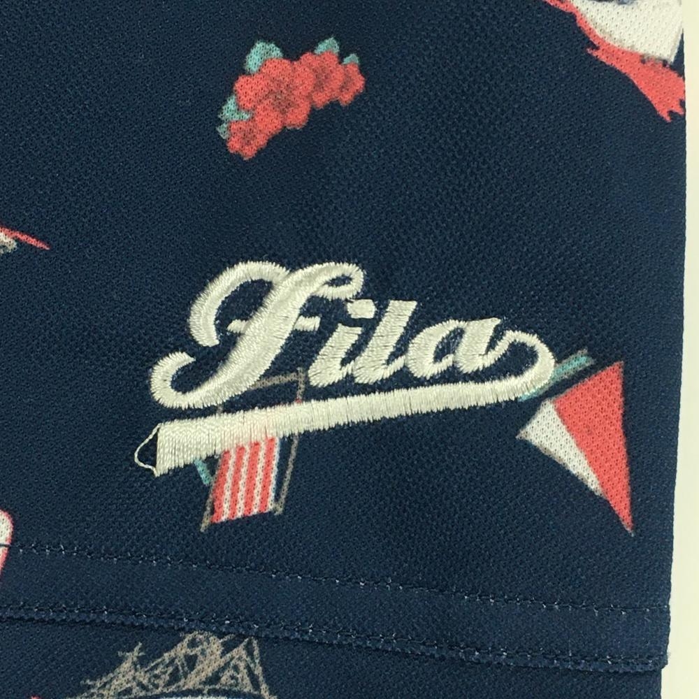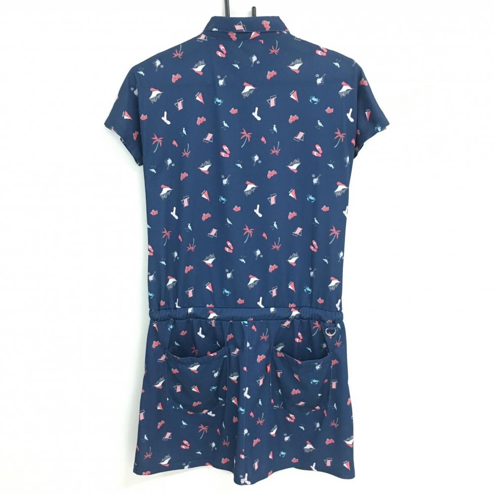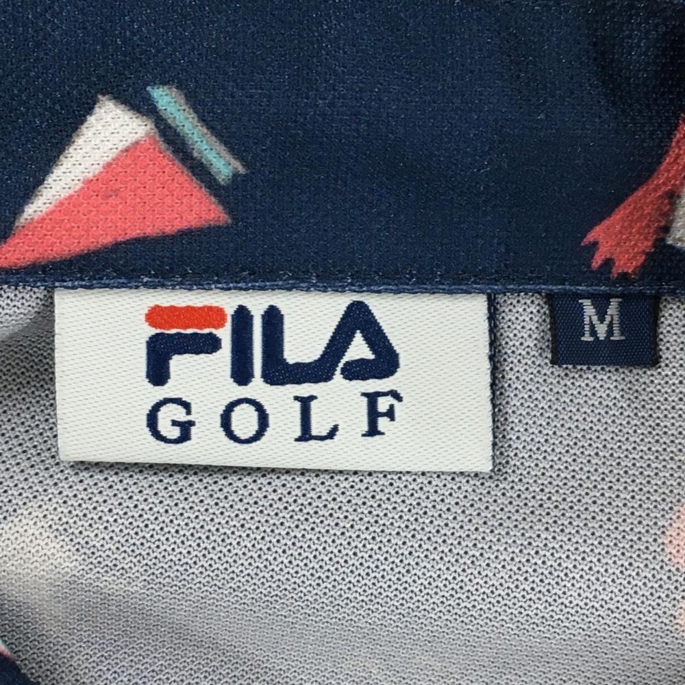 【美品】フィラゴルフ 半袖ポロワンピース ネイビー×ピンク 総柄 夏 ウエストゴム レディース M ゴルフウェア FILA GOLF