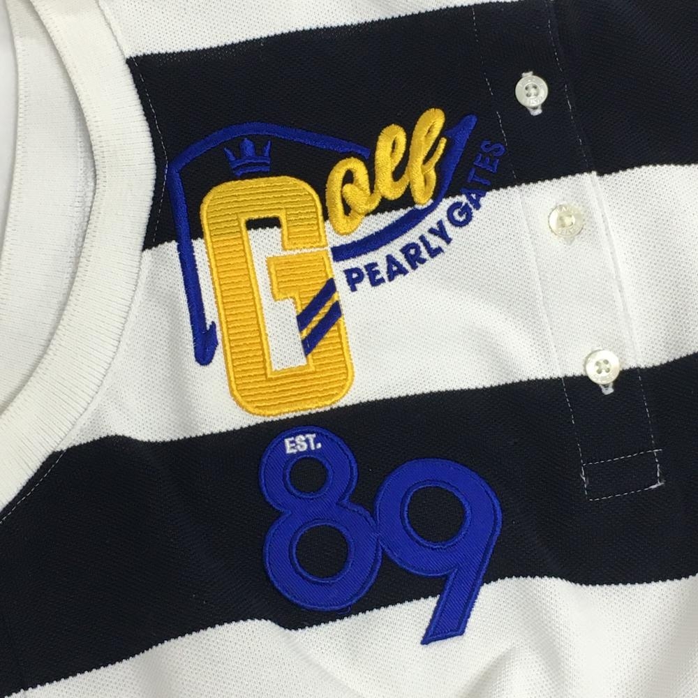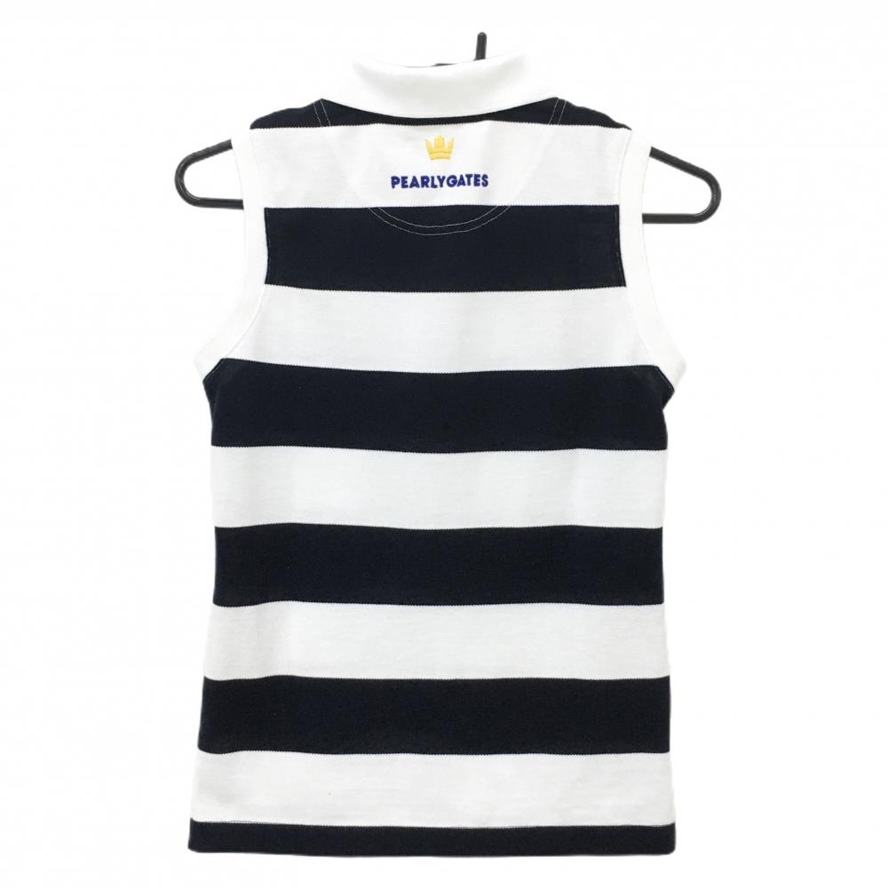 パーリーゲイツ ノースリーブポロシャツ 白×黒 ボーダー 胸刺しゅう レディース 0(S) ゴルフウェア PEARLY GATES