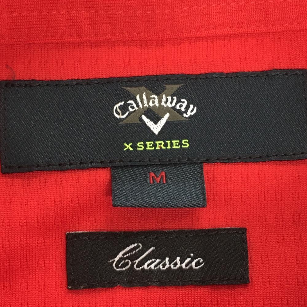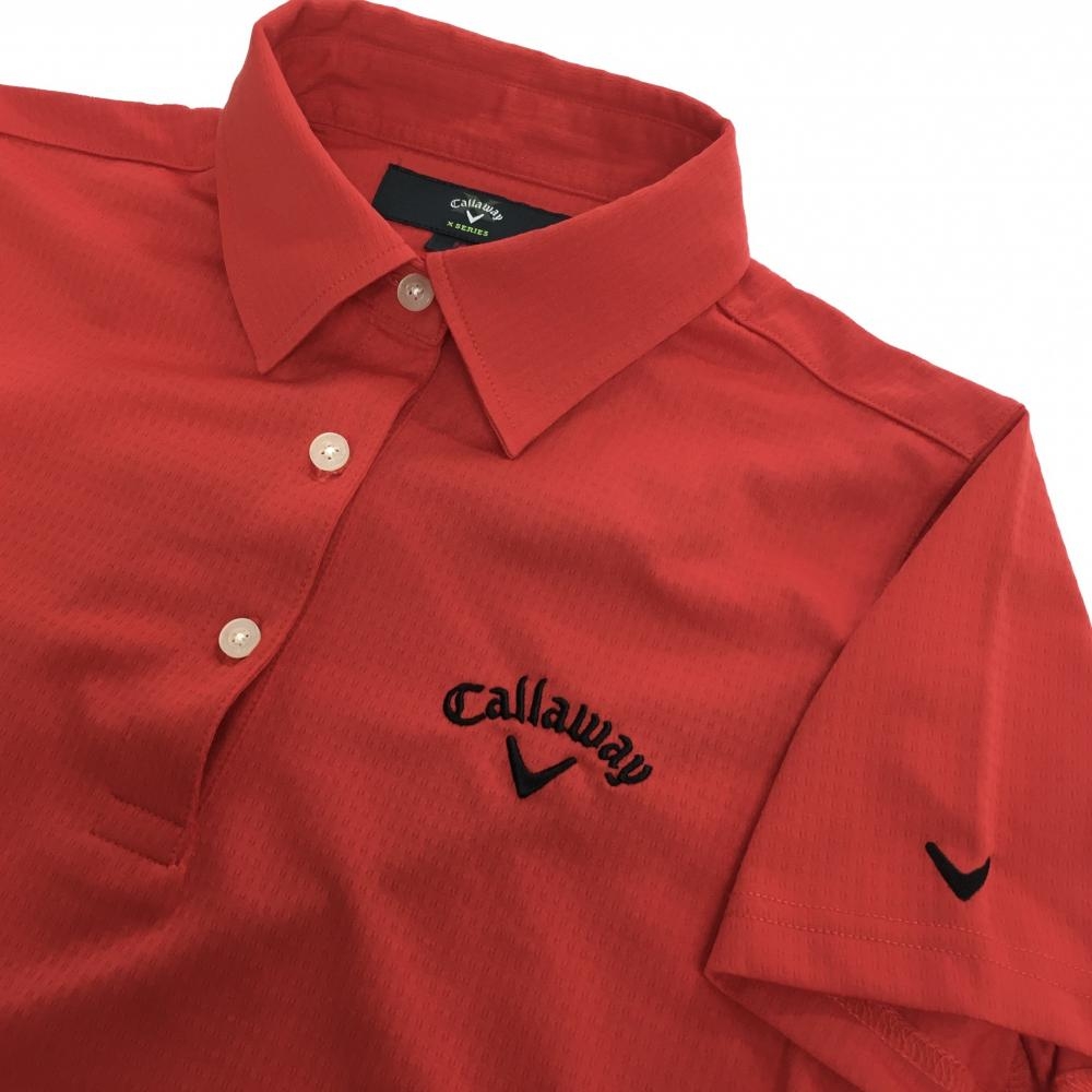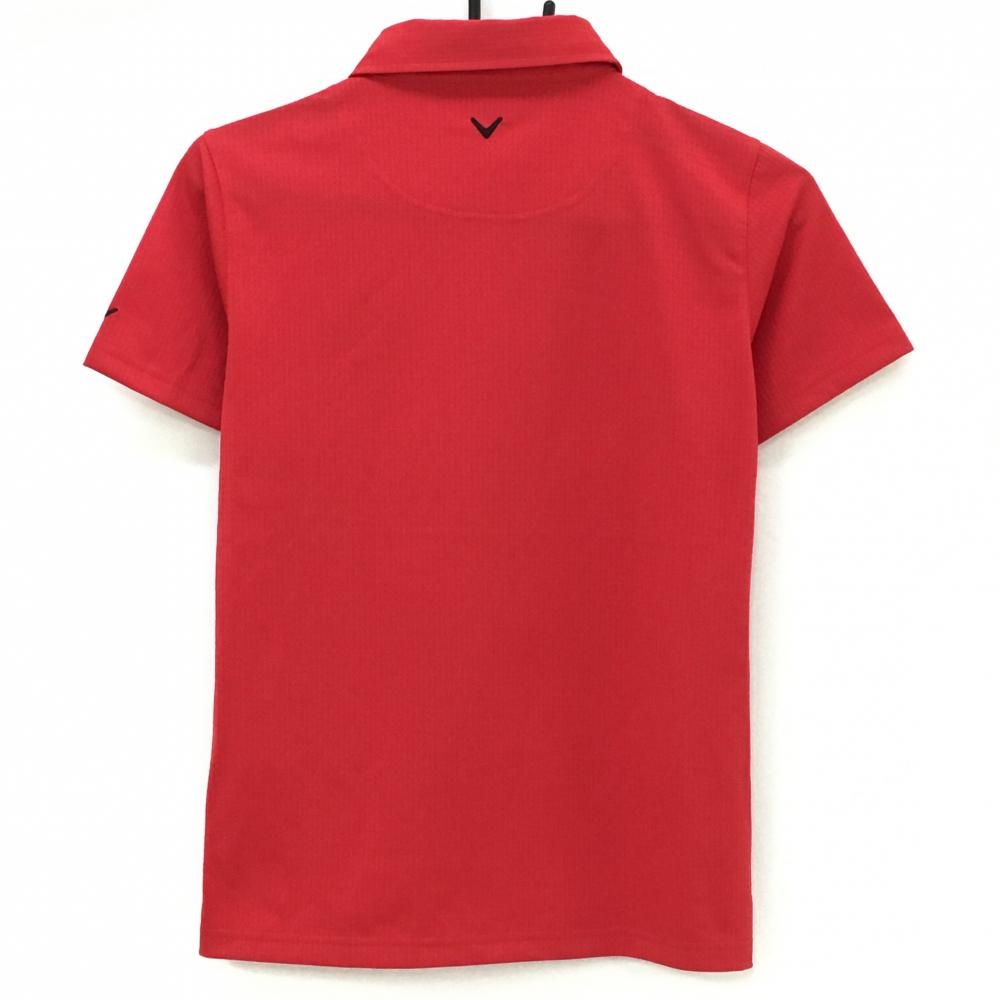 【超美品】キャロウェイ 半袖ポロシャツ レッド 総柄地模様 ロゴ黒 レディース M ゴルフウェア Callaway