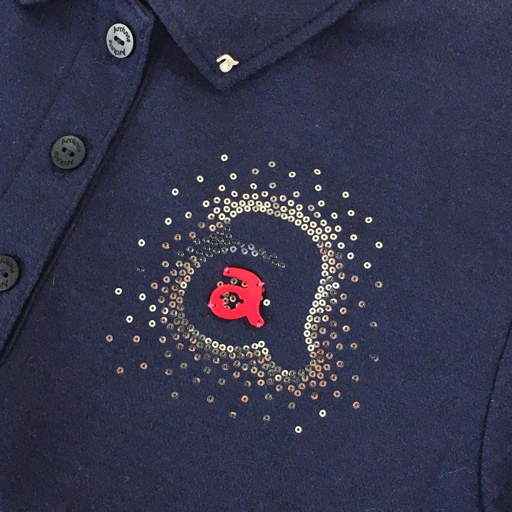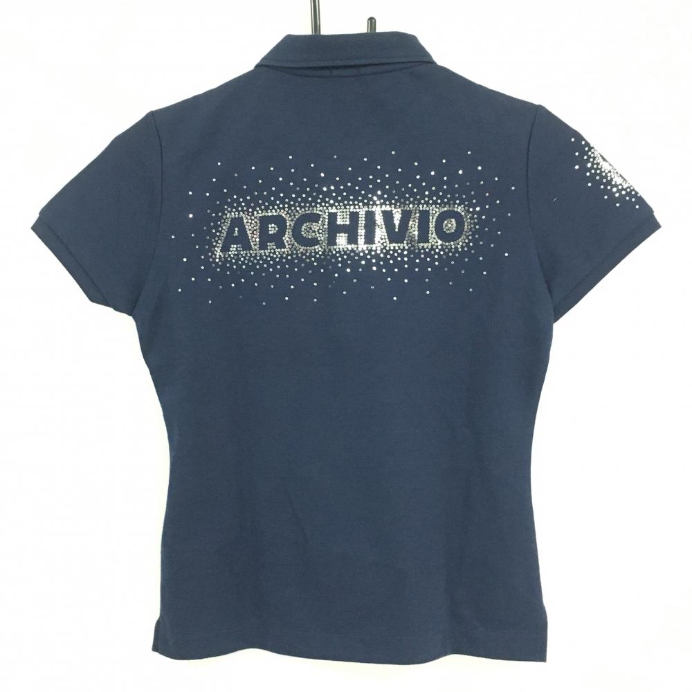 【超美品】アルチビオ 半袖ポロシャツ ネイビー×シルバー スパンコールロゴ レディース 36(S) ゴルフウェア archivio