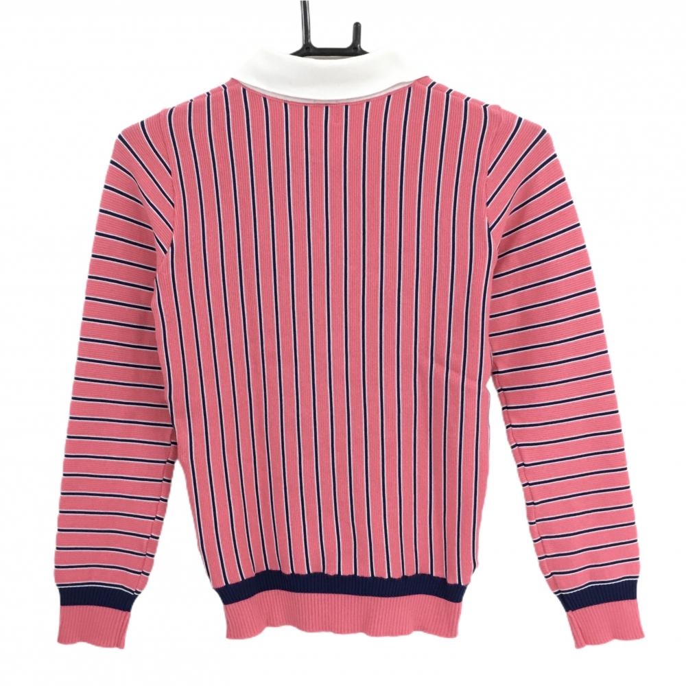 【超美品】アルチビオ 襟付セーター ピンク×ネイビー ストライプ ウール混 ニット レディース 36(S) ゴルフウェア archivio