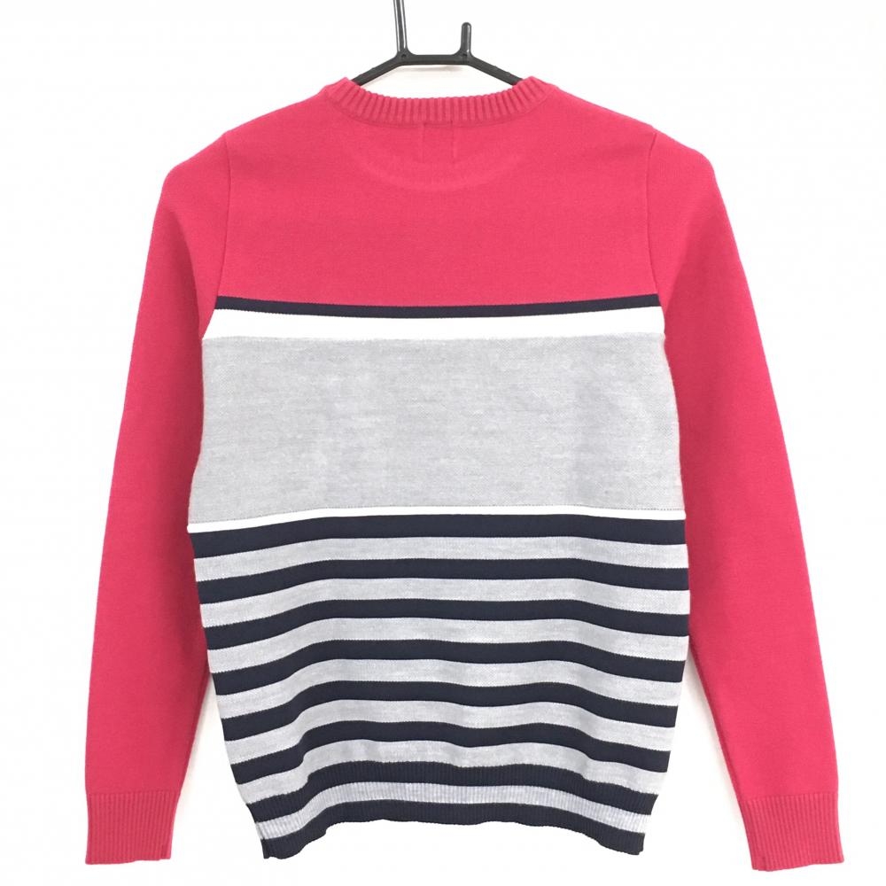 【美品】アルチビオ セーター ピンク×グレー 下部ボーダー ウール混 ニット レディース 36(S) ゴルフウェア archivio