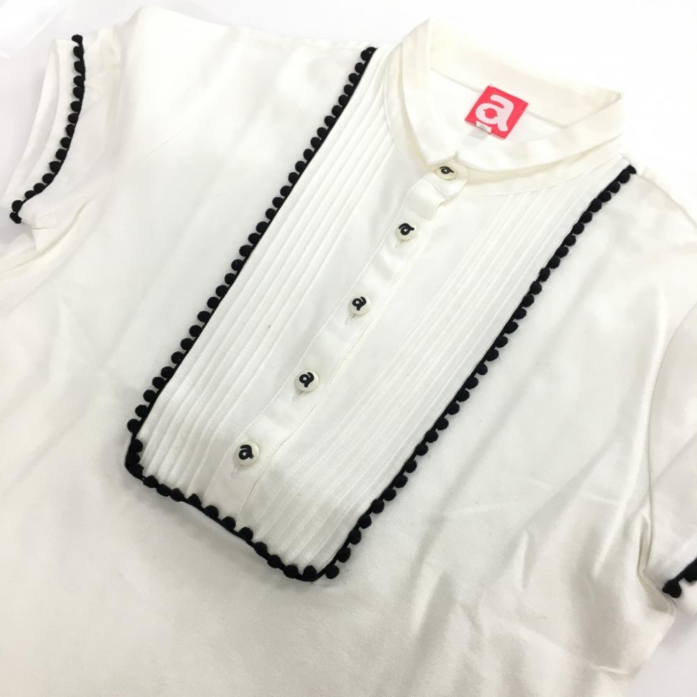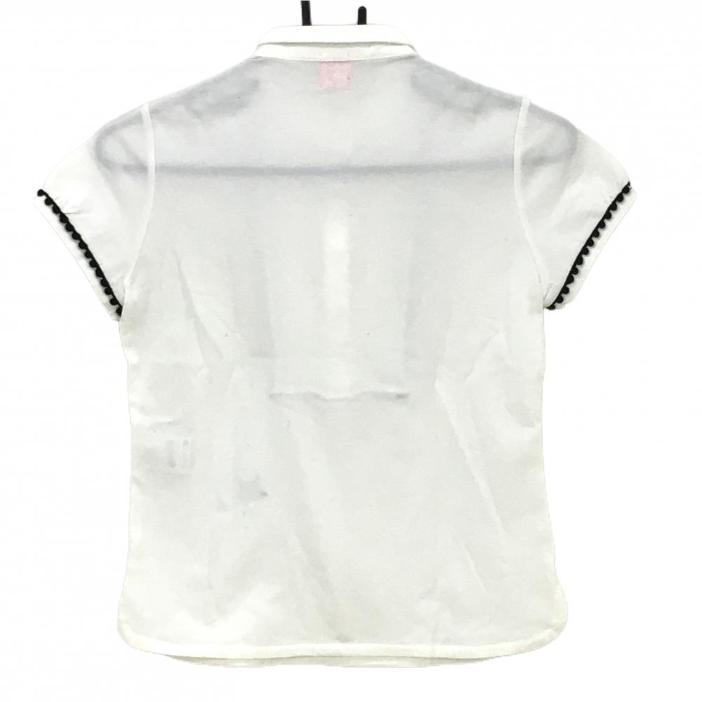 【美品】アルチビオ 半袖ポロシャツ 白×黒 ボタンロゴ レディース 36(S) ゴルフウェア archivio