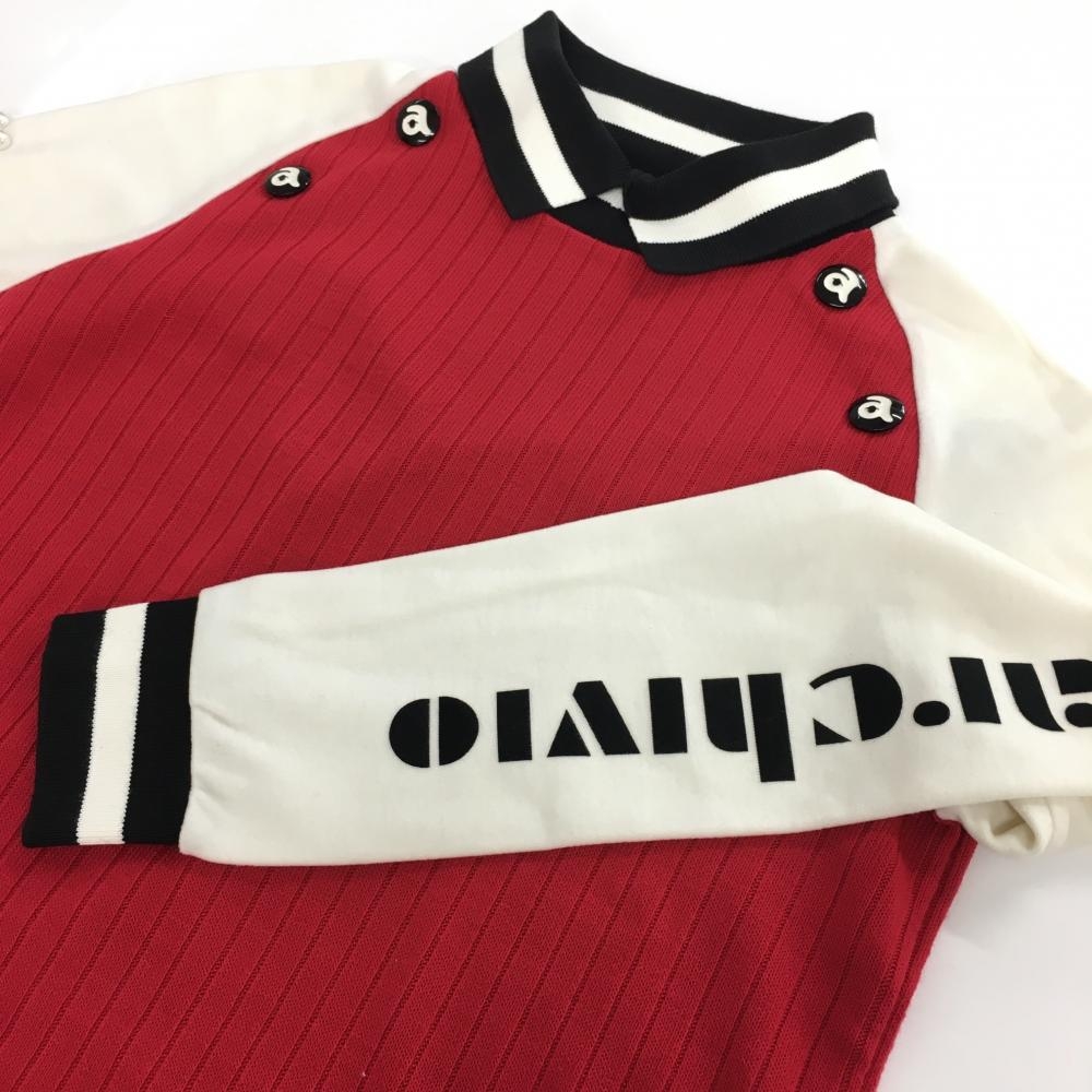 【美品】アルチビオ 襟付セーター レッド×白 袖切替 微起毛 ニット レディース 36(S) ゴルフウェア archivio