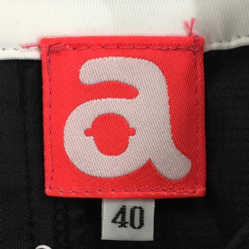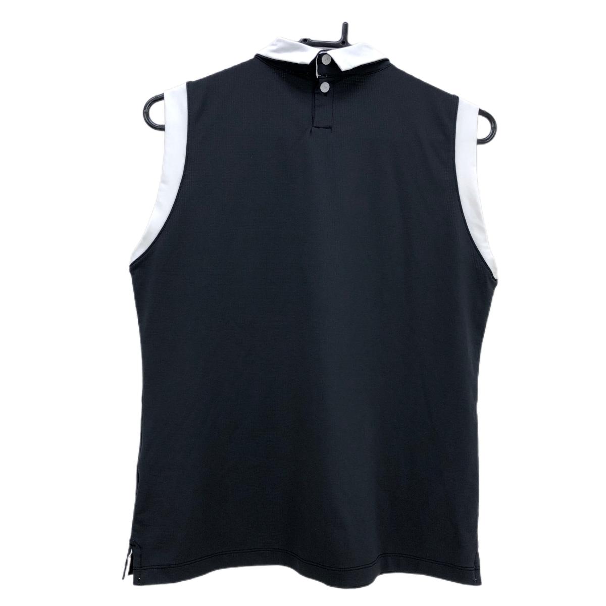 【超美品】アルチビオ 襟付きノースリーブシャツ 黒×白 フロントロゴ レディース 40(L) ゴルフウェア archivio