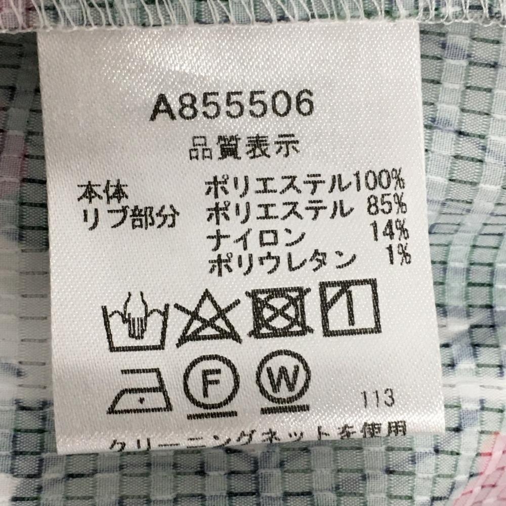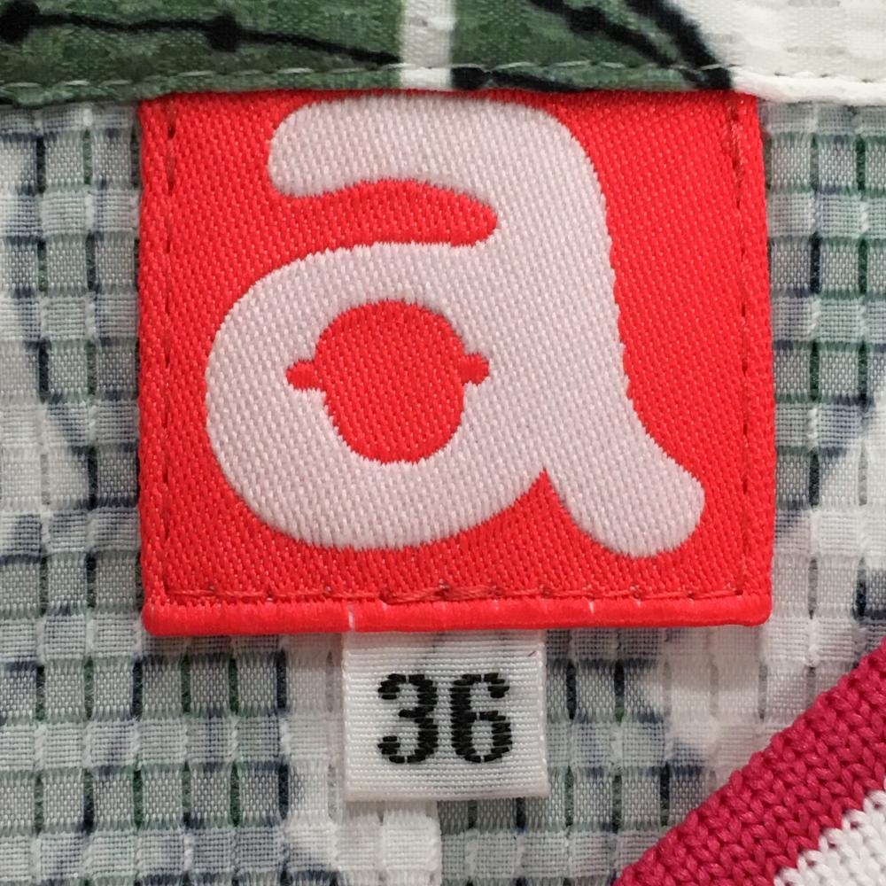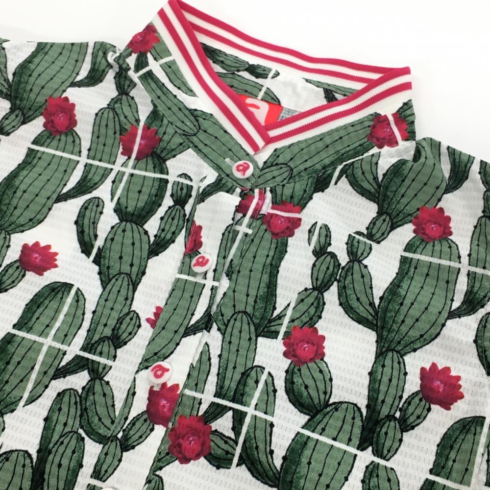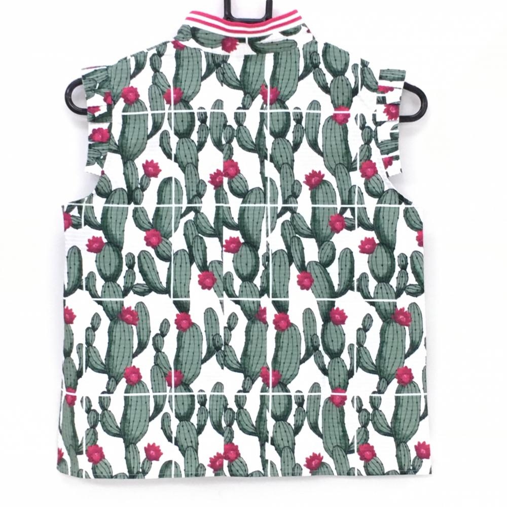 【超美品】アルチビオ ノースリーブポロシャツ 白×グリーン サボテン柄 メッシュ調 レディース 36(S) ゴルフウェア archivio