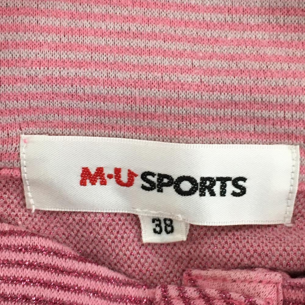 MUスポーツ 長袖ハイネックシャツ ピンク ボーダー ラメ レディース 38(S) ゴルフウェア M・U SPORTS