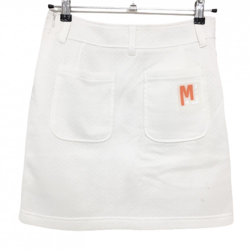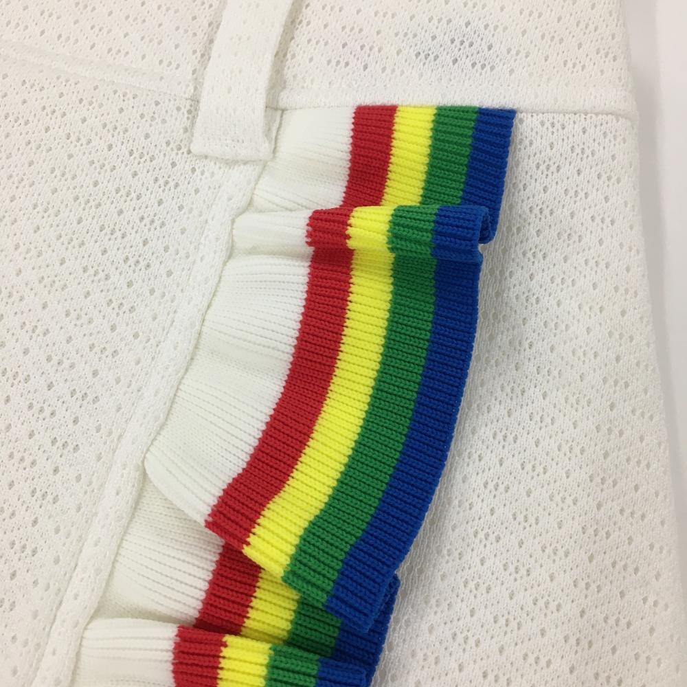【超美品】マークアンドロナ スカート 白×マルチカラー メッシュ生地 レインボーフリル レディース 38(M) ゴルフウェア MARK&LONA