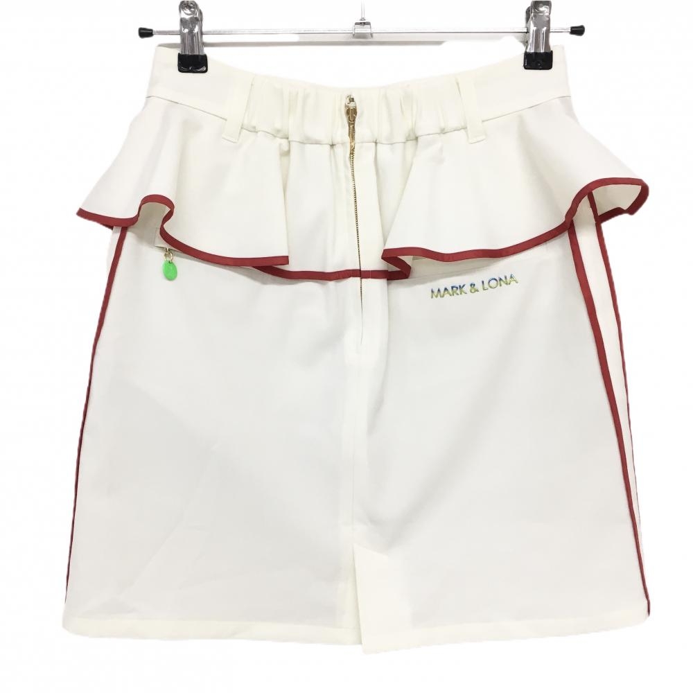 【美品】マークアンドロナ スカート 白×レッド フリル 裏地付 レディース 38(M) ゴルフウェア MARK&LONA