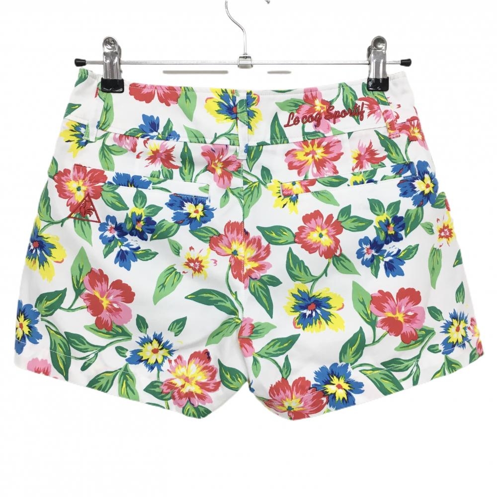 【超美品】ルコック ショートパンツ 白×マルチカラー 花柄 ストレッチ レディース 9 ゴルフウェア le coq sportif