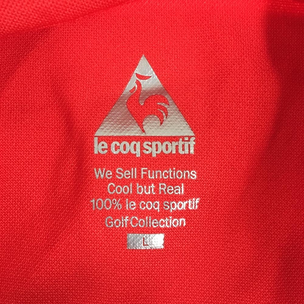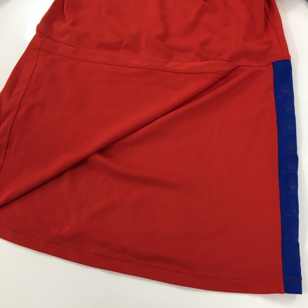 ルコック 半袖ハイネックワンピース レッド×白 ロゴワッペン ハーフジップ レディース L ゴルフウェア le coq sportif