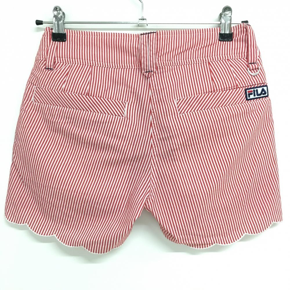 【超美品】フィラゴルフ ショートパンツ レッド×白 ストライプ レディース S ゴルフウェア FILA GOLF
