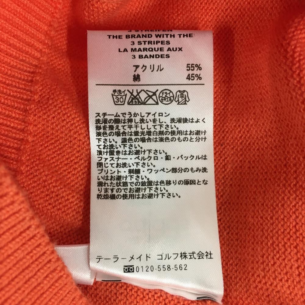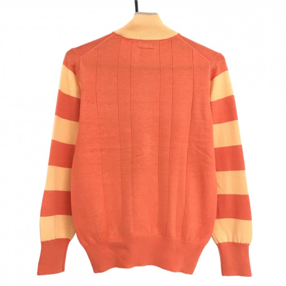 【超美品】アディダス ニットジャケット オレンジ×ライトオレンジ 袖ボーダー ロゴ刺しゅう レディース S/P ゴルフウェア adidas