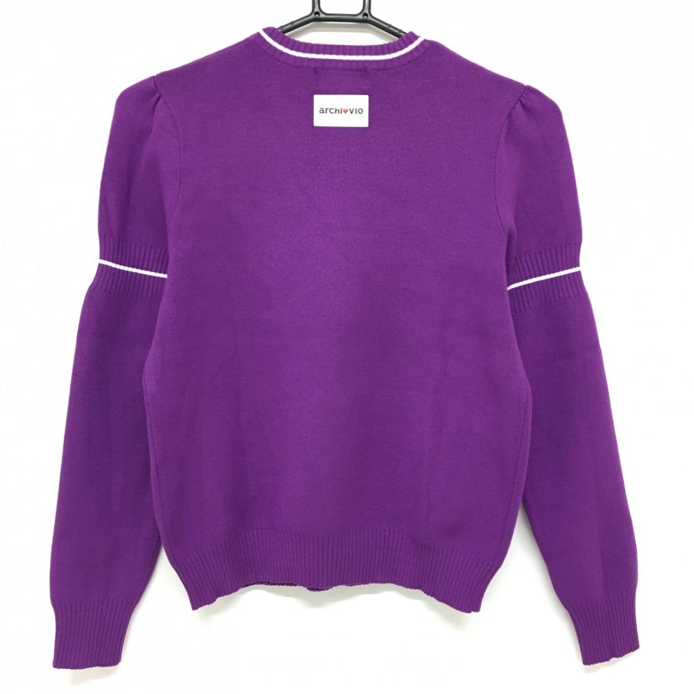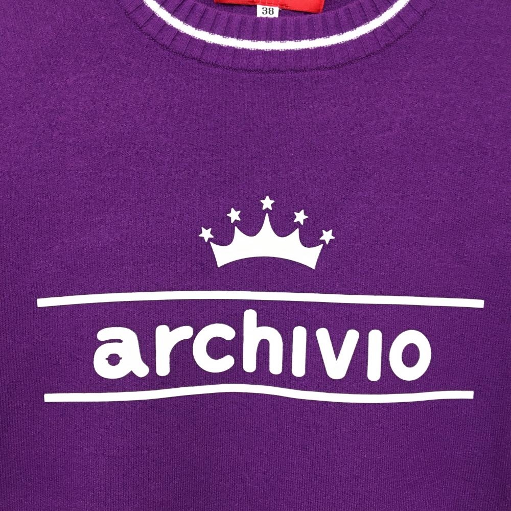 アルチビオ セーター パープル×白 ニット クラウンプリント レディース 38(M) ゴルフウェア archivio