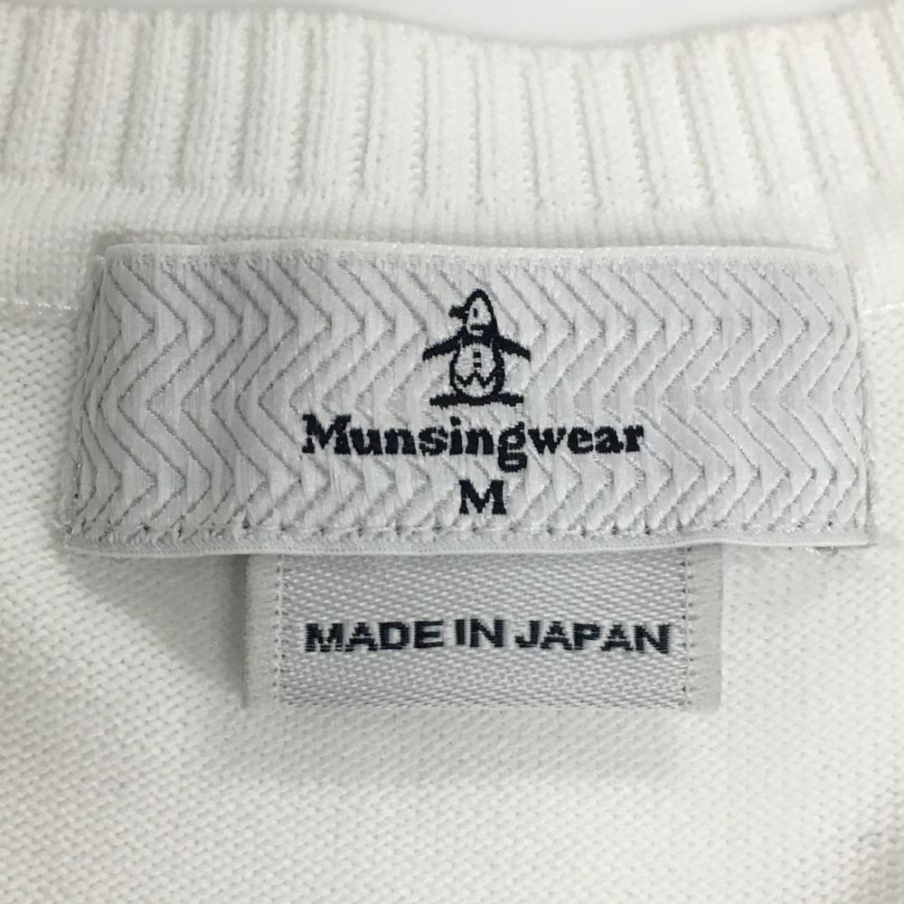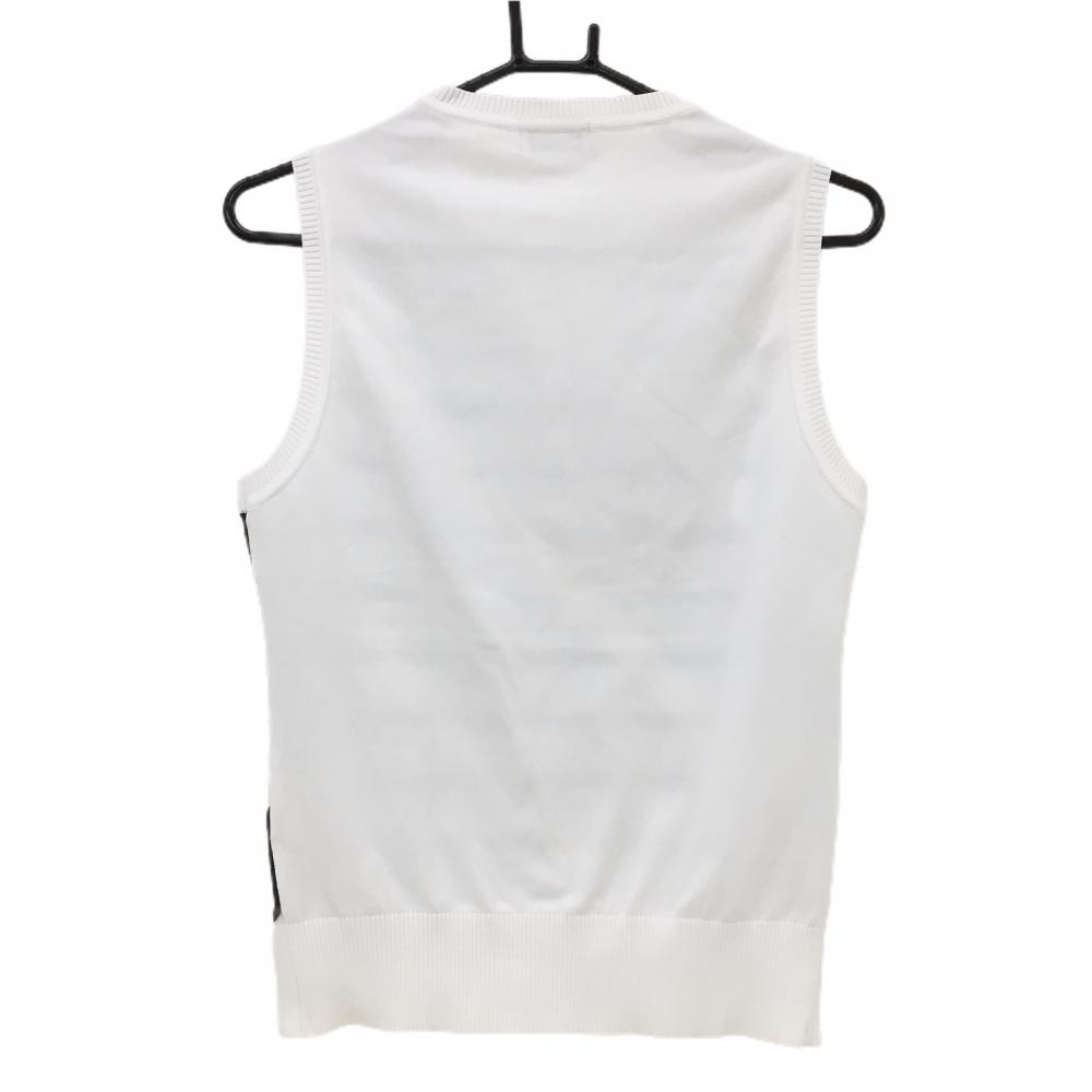 マンシングウェア ベスト 白×グリーン 前面斜めストライプ 一部シアー素材 レディース M ゴルフウェア Munsingwear