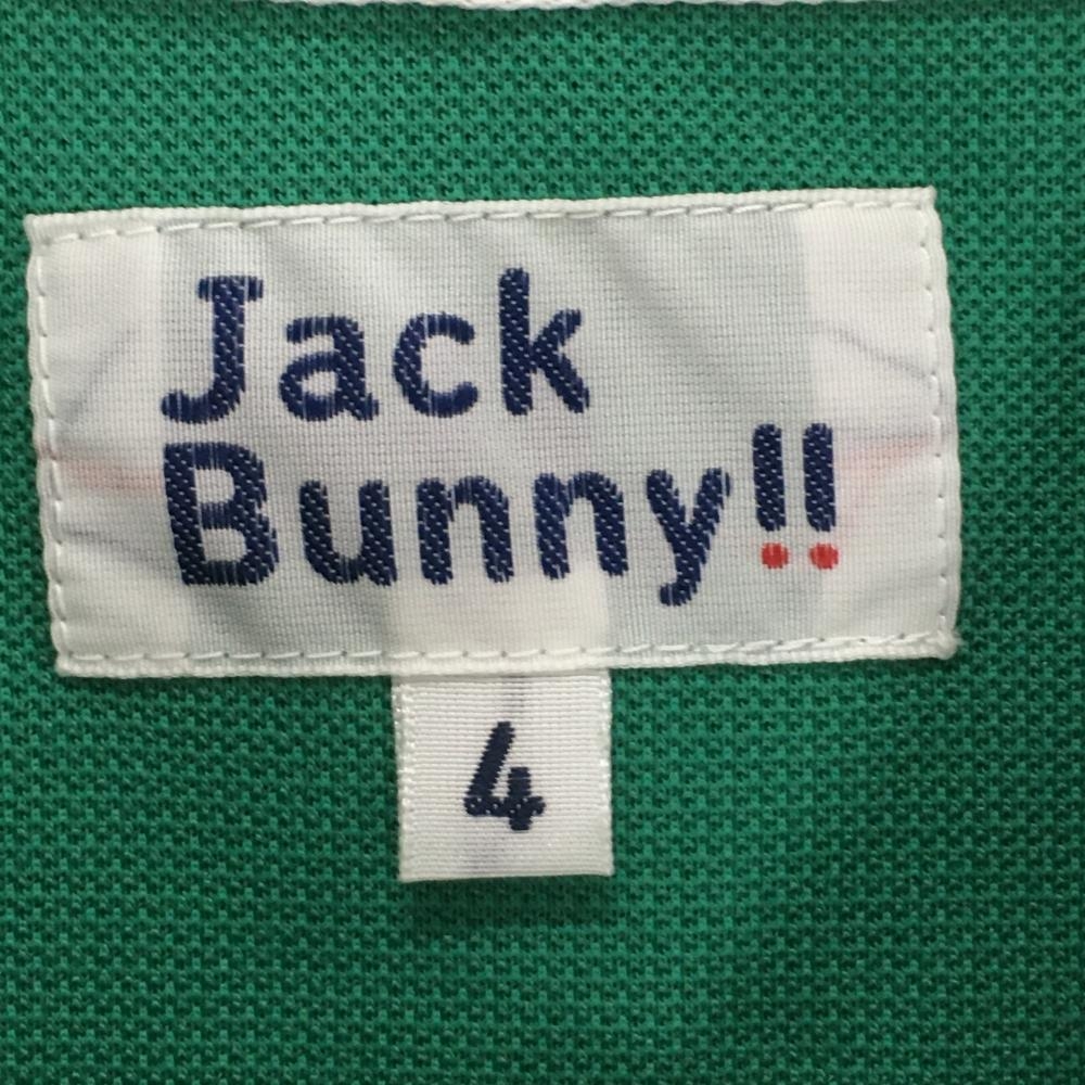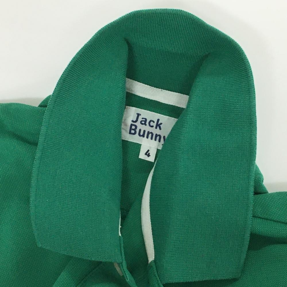 ジャックバニー 半袖ポロシャツ グリーン×白 フロントプリント メンズ 4(M) ゴルフウェア Jack Bunny