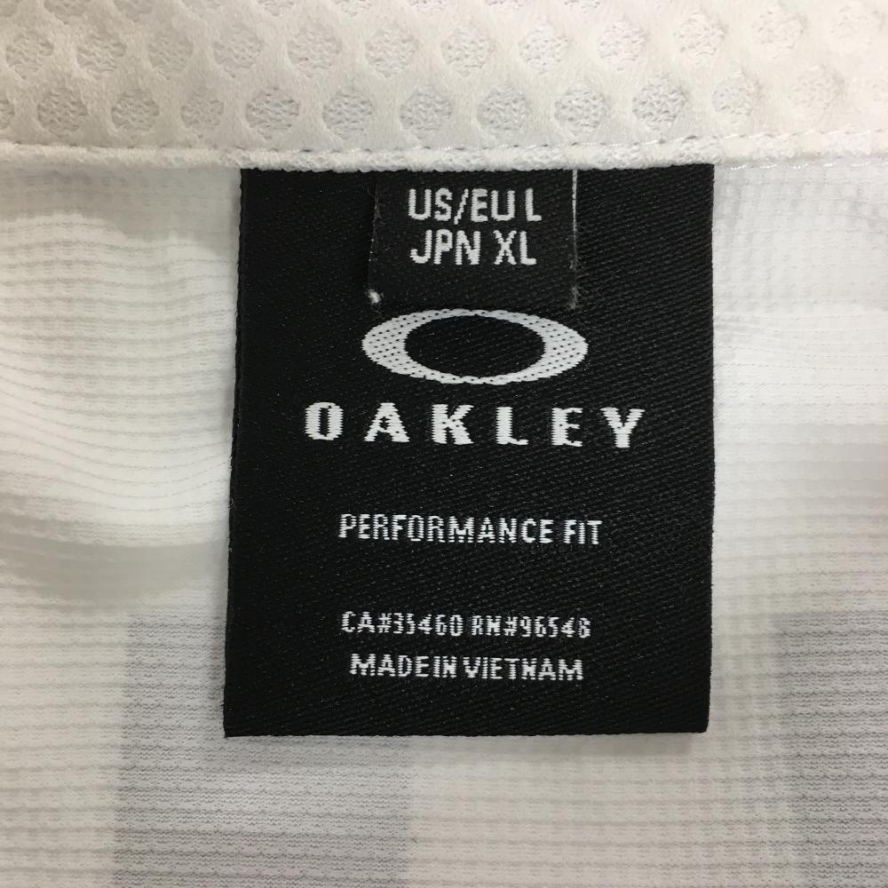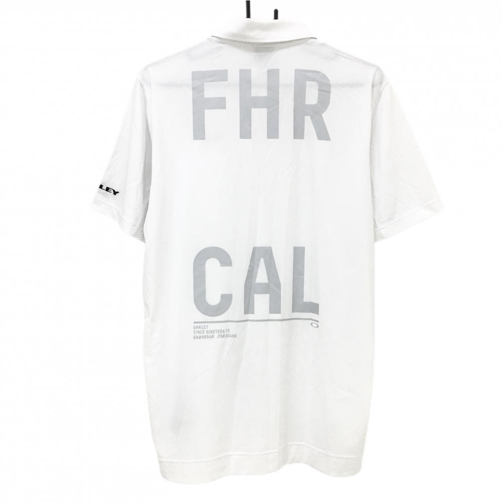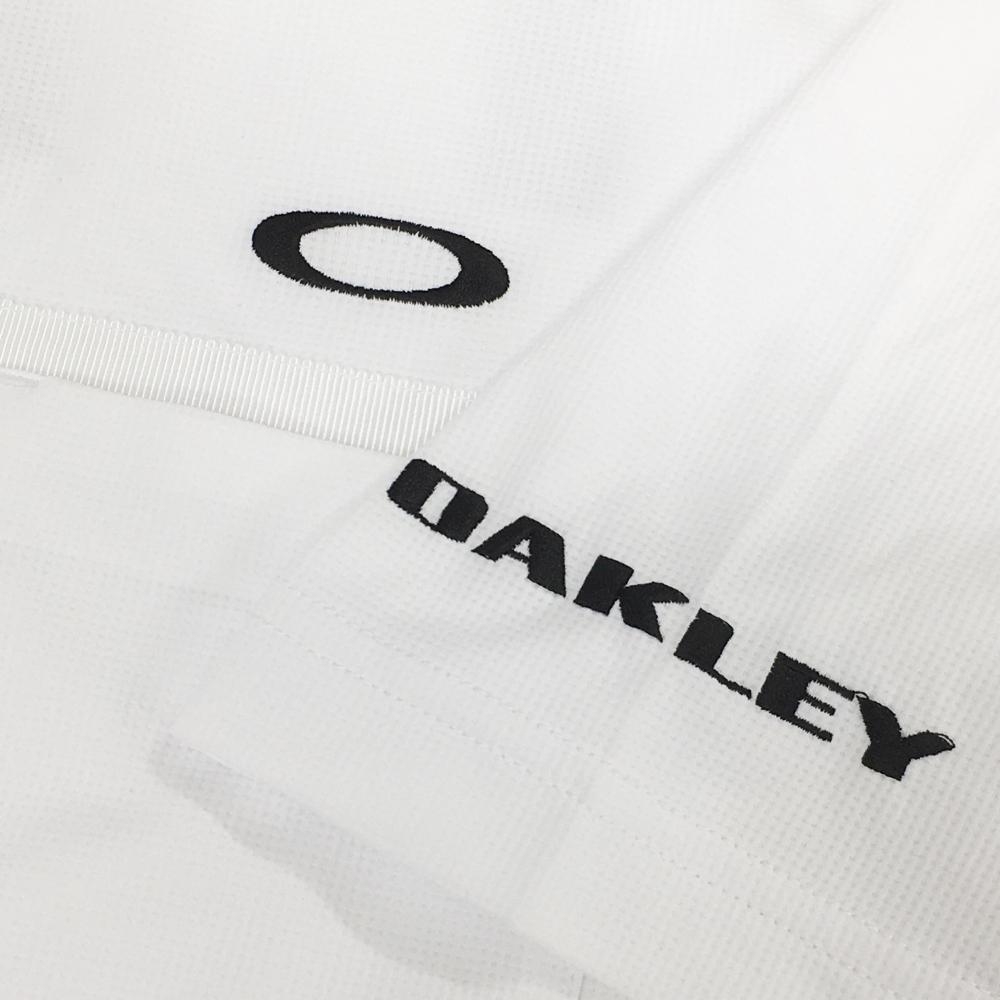 【超美品】オークリー 半袖ポロシャツ 白 ロゴ黒 前立て横・袖下メッシュ メンズ XL ゴルフウェア Oakley