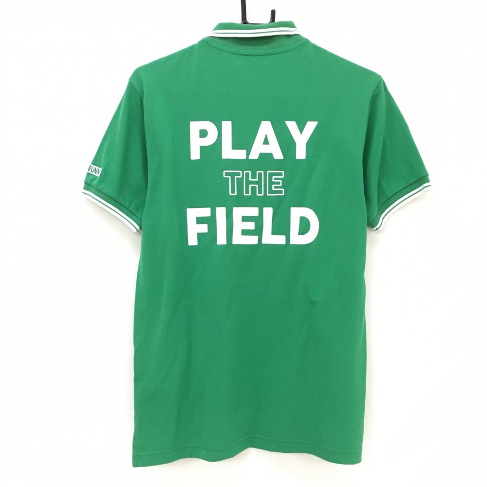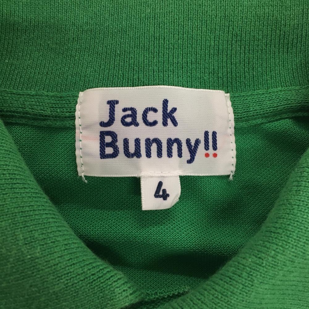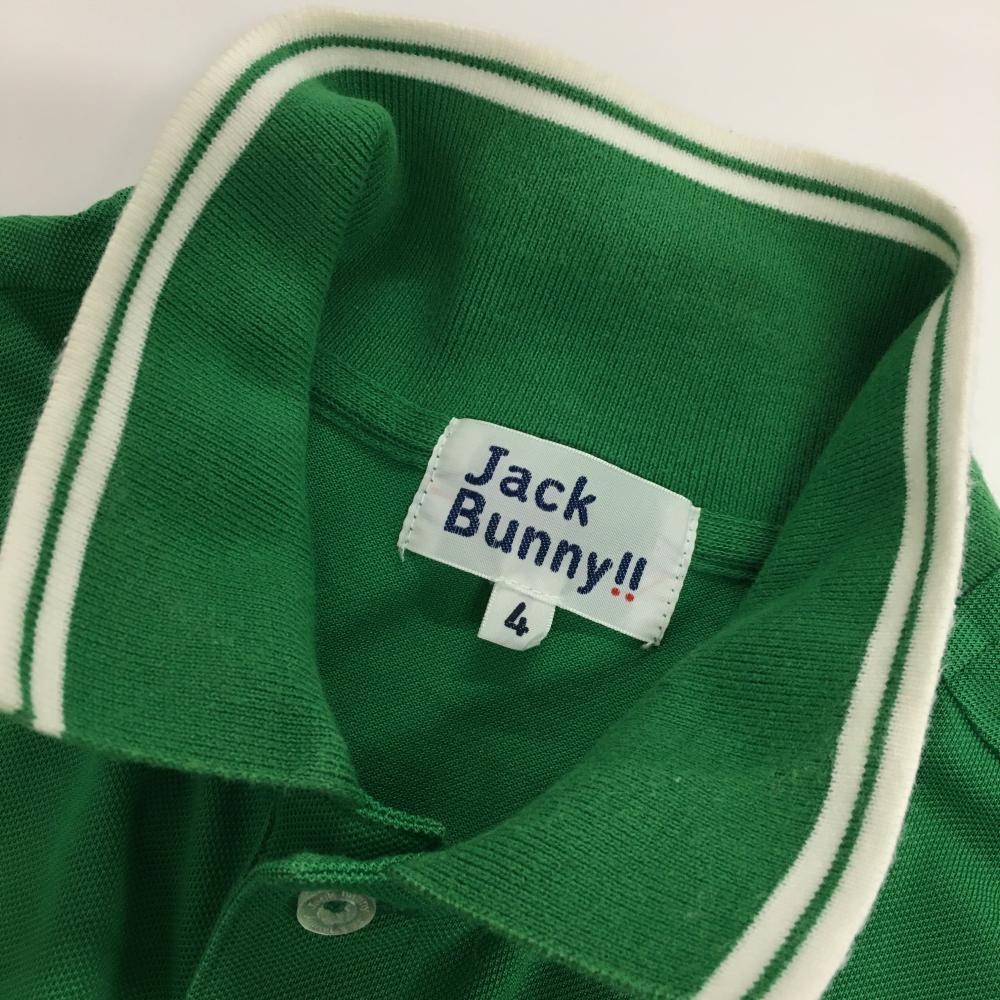 ジャックバニー 半袖ポロシャツ グリーン場×白 襟・袖口ライン ロゴワッペン メンズ 4(M) ゴルフウェア Jack Bunny