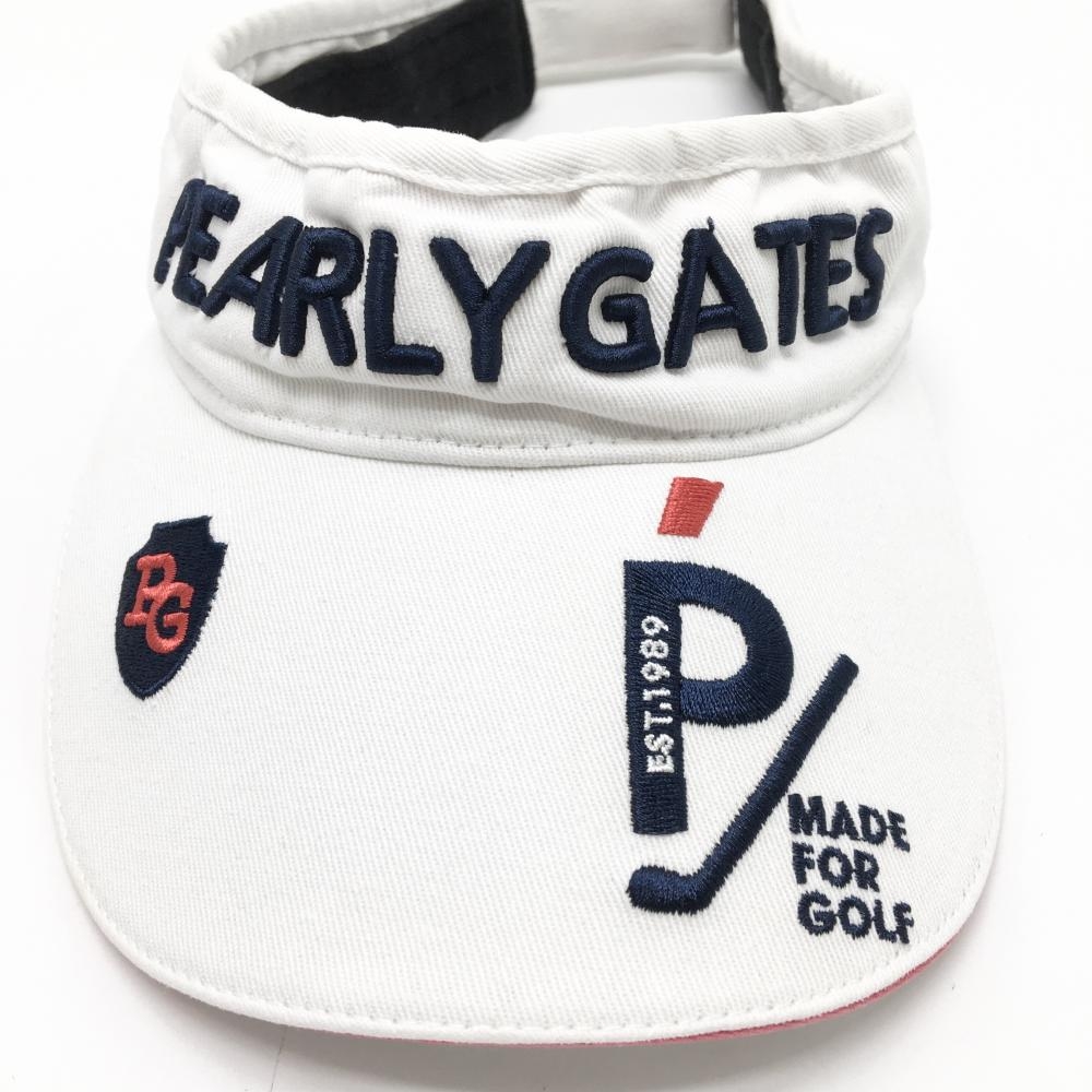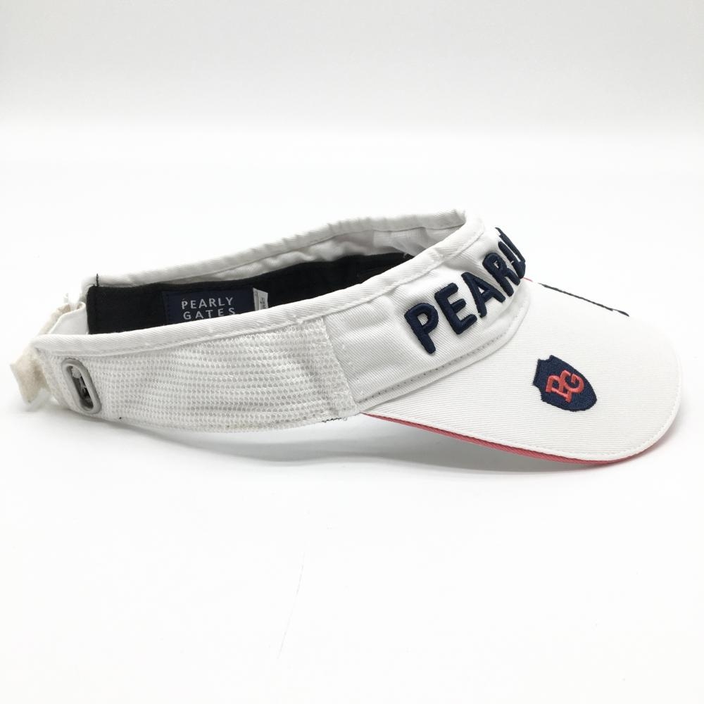 【美品】パーリーゲイツ サンバイザー 白×ネイビー サイドメッシュ 立体ロゴ FR ゴルフウェア PEARLY GATES