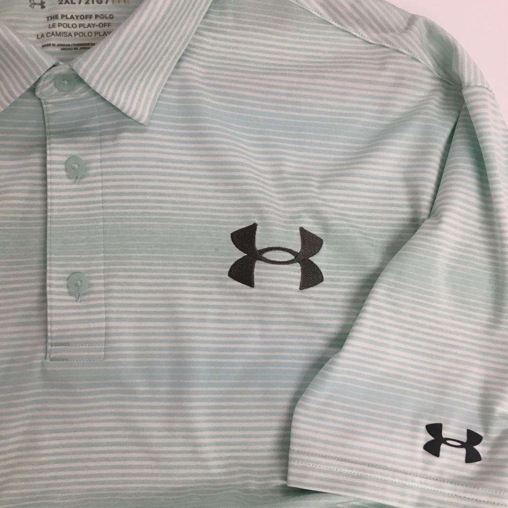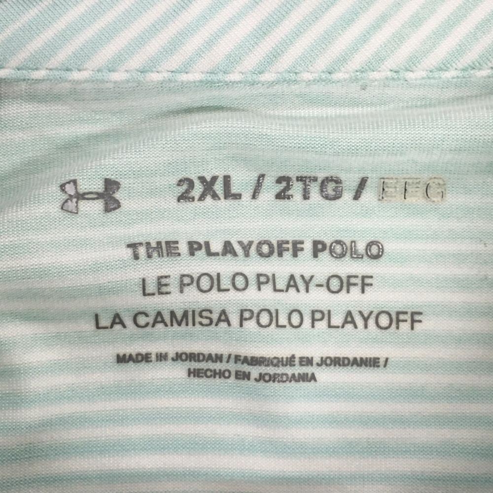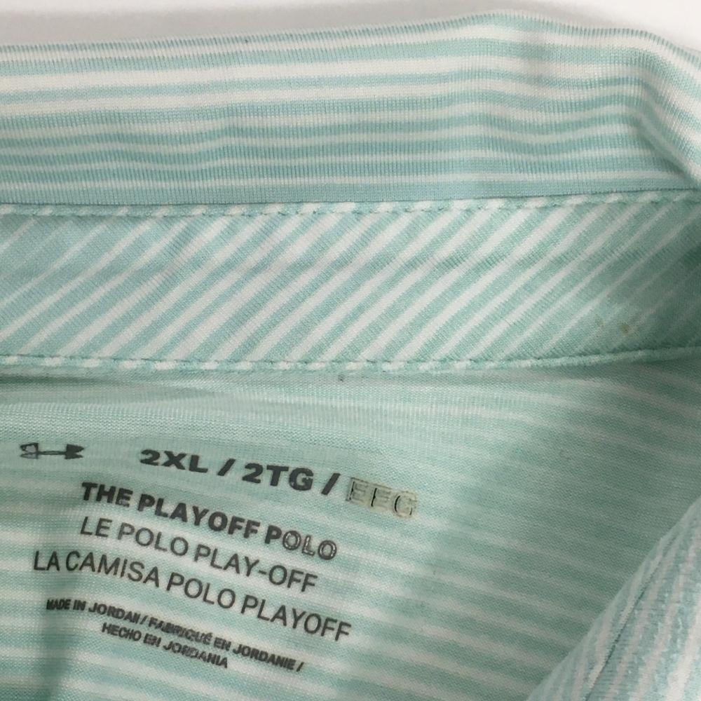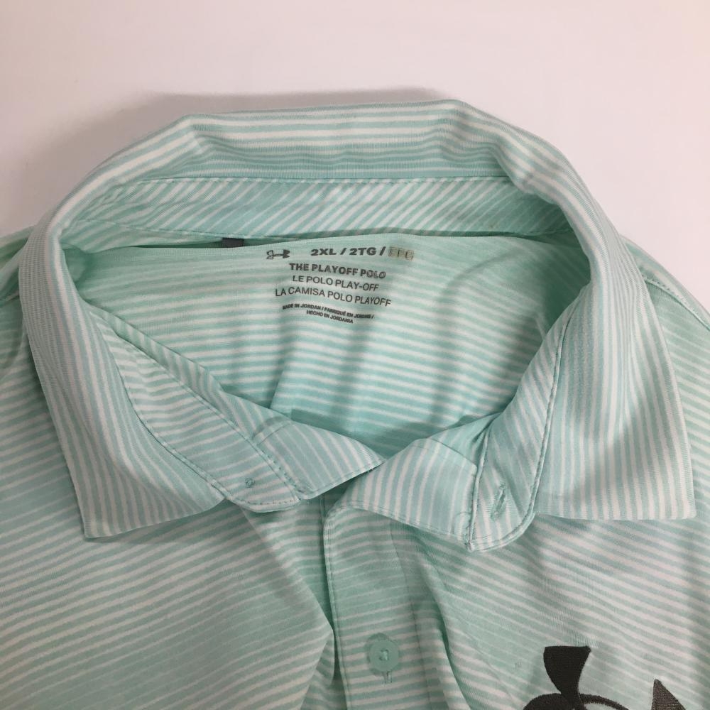 アンダーアーマー 半袖ポロシャツ ライトグリーン×白 ボーダー調 メンズ 2XL ゴルフウェア 大きいサイズ UNDER ARMOUR