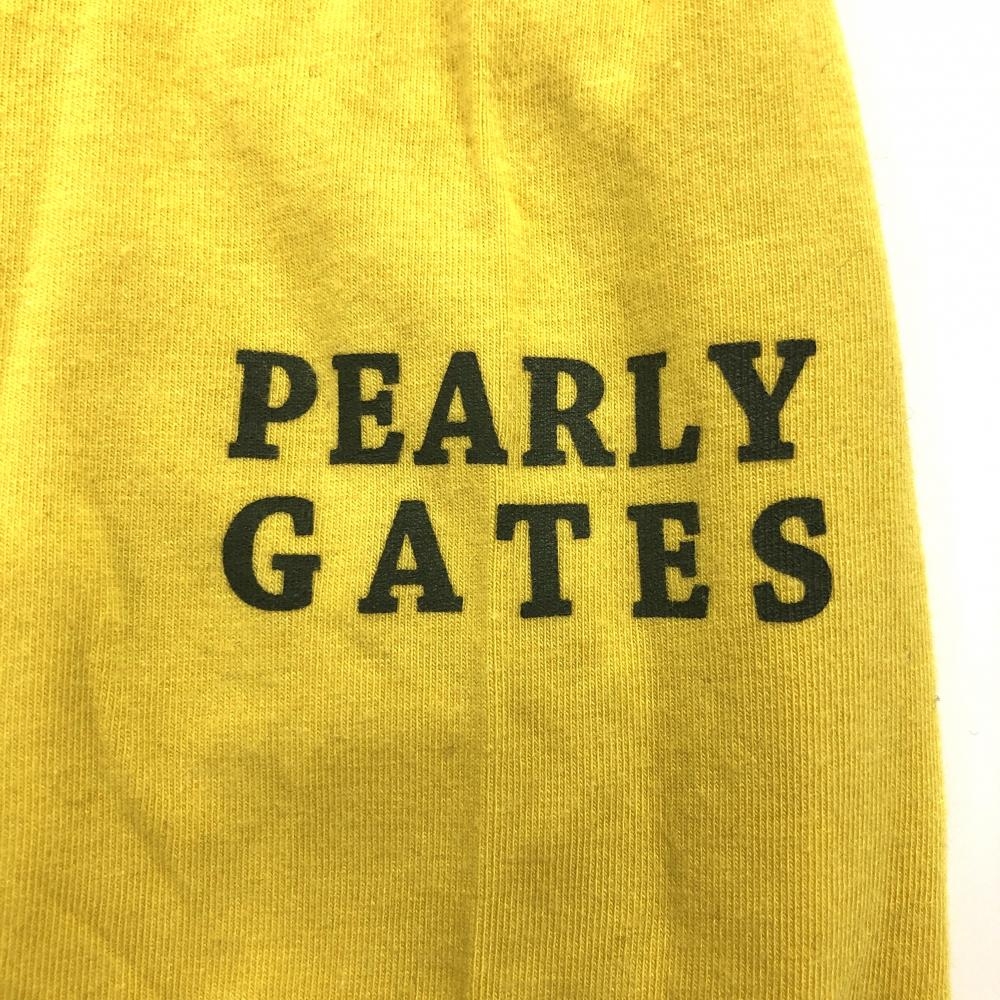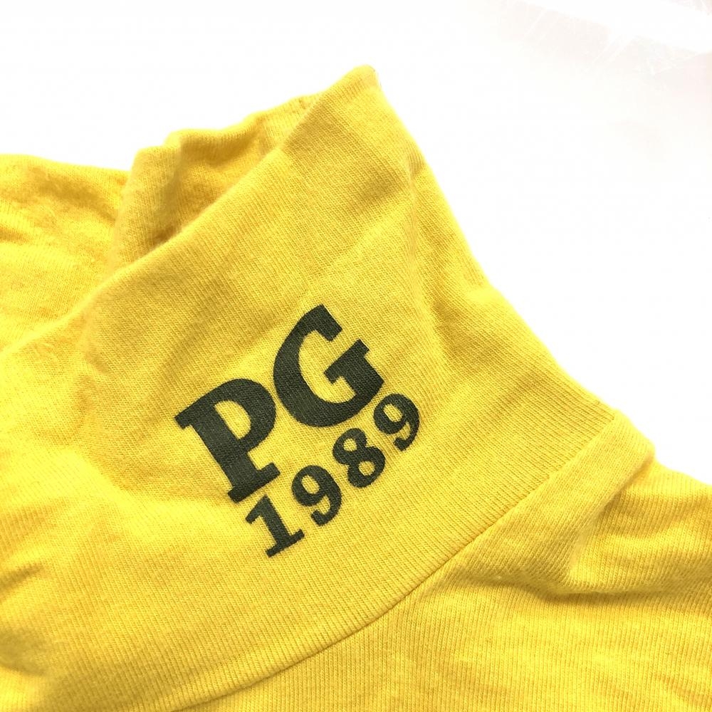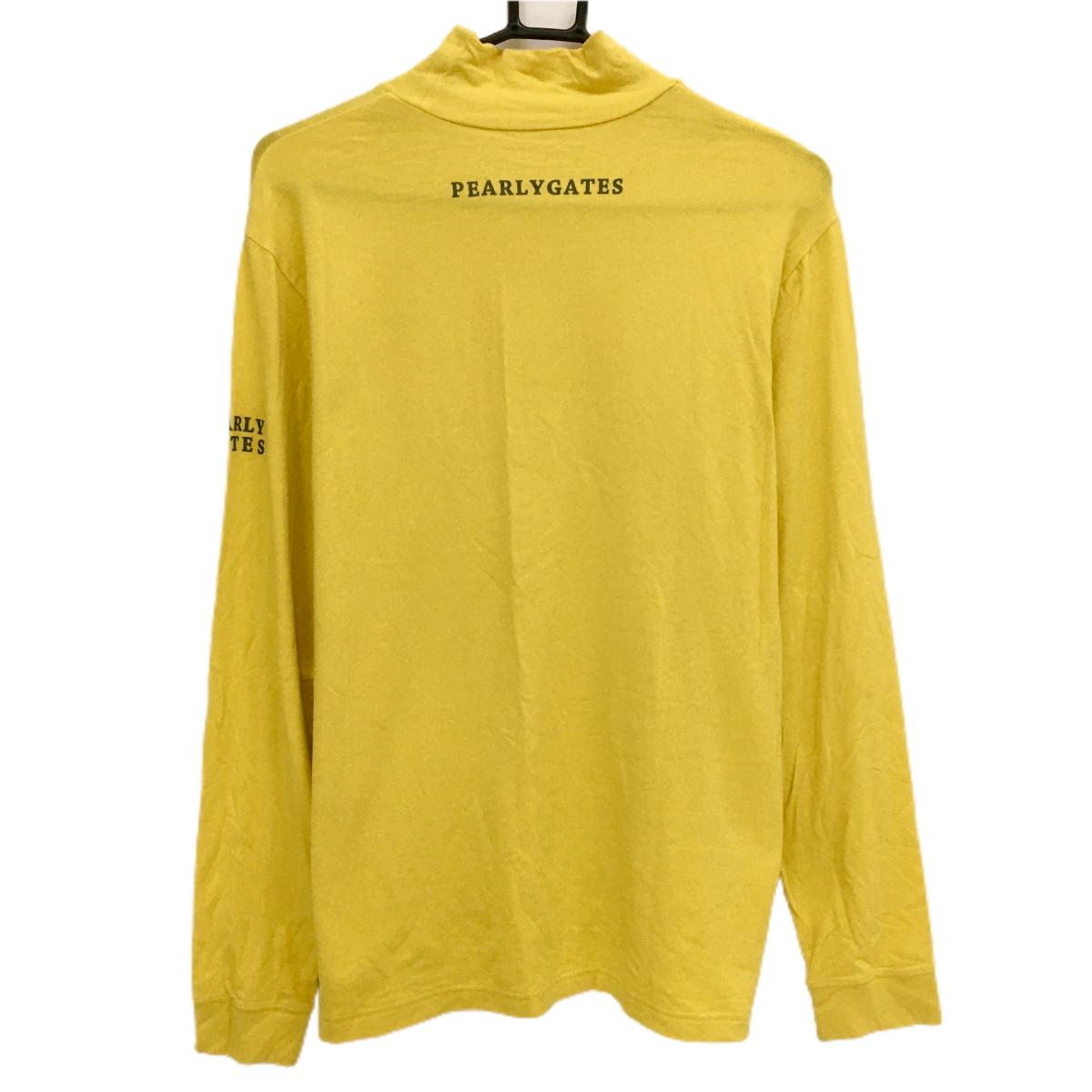【美品】パーリーゲイツ 長袖ハイネックシャツ イエロー ロゴグレー メンズ 5(L) ゴルフウェア PEARLY GATES