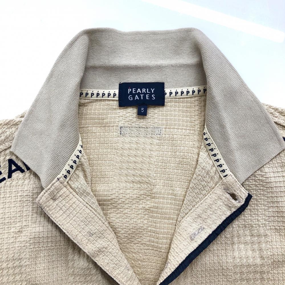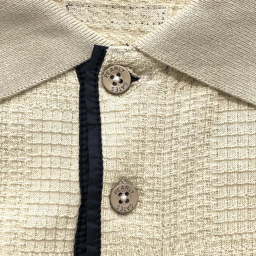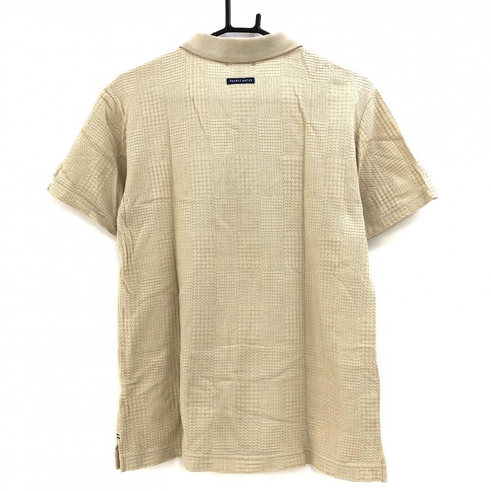 パーリーゲイツ 半袖ポロシャツ ベージュ×ネイビー 織生地 コットン100% メンズ 4(M) ゴルフウェア PEARLY GATES