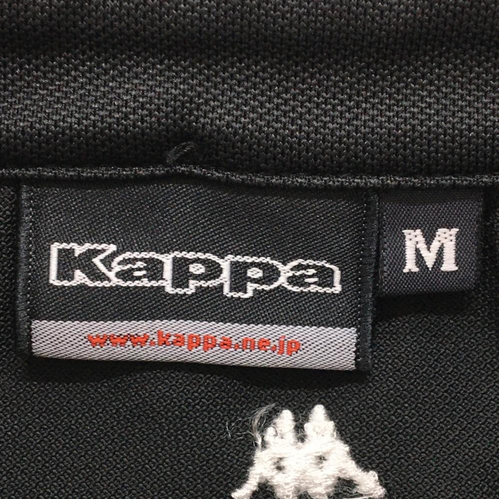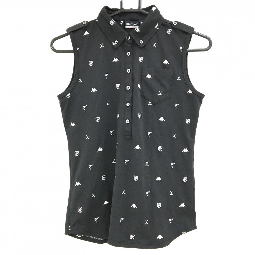 【超美品】カッパ ノースリーブポロシャツ 黒×白 ロゴ総柄 ボタンダウン レディース M ゴルフウェア Kappa
