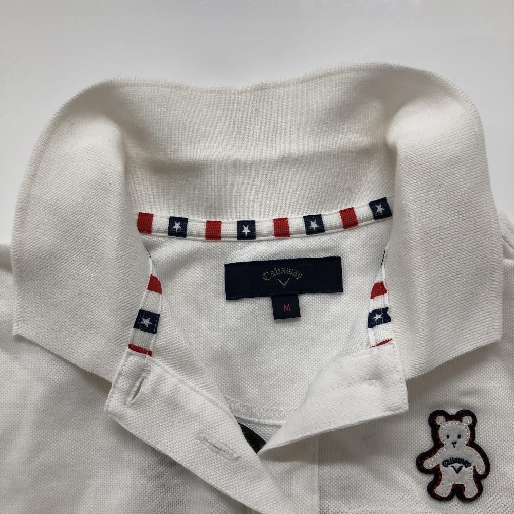 キャロウェイ 半袖ポロシャツ 白 ベアワッペン レディース M ゴルフウェア Callaway