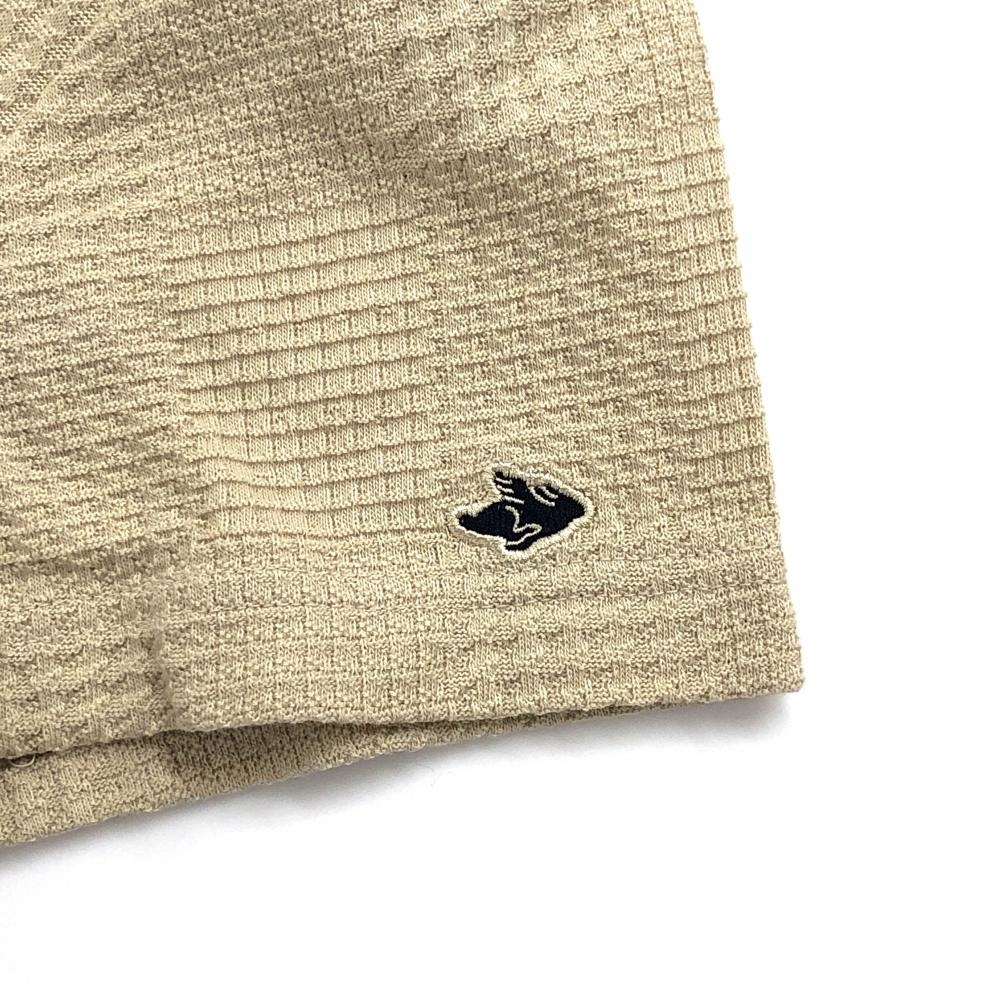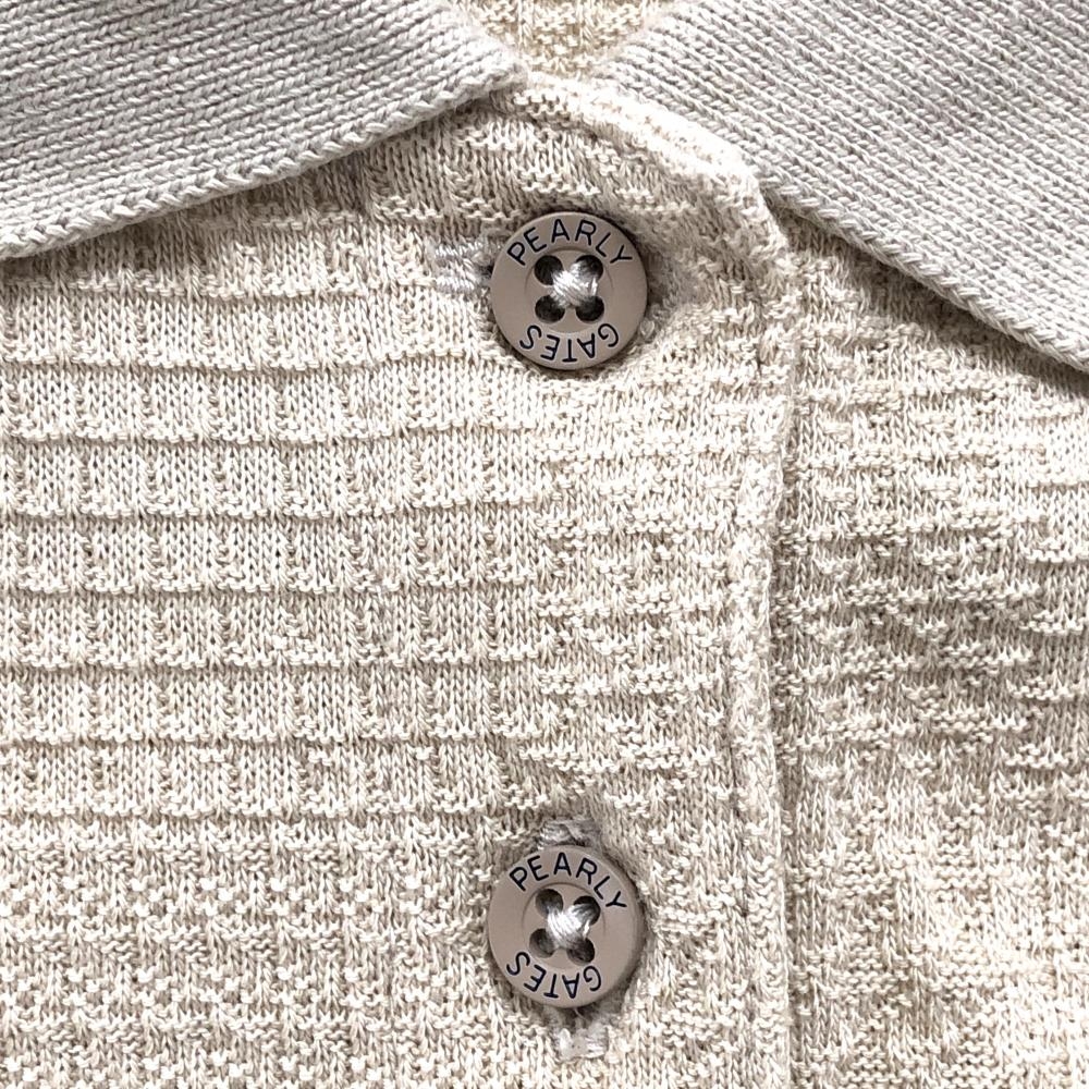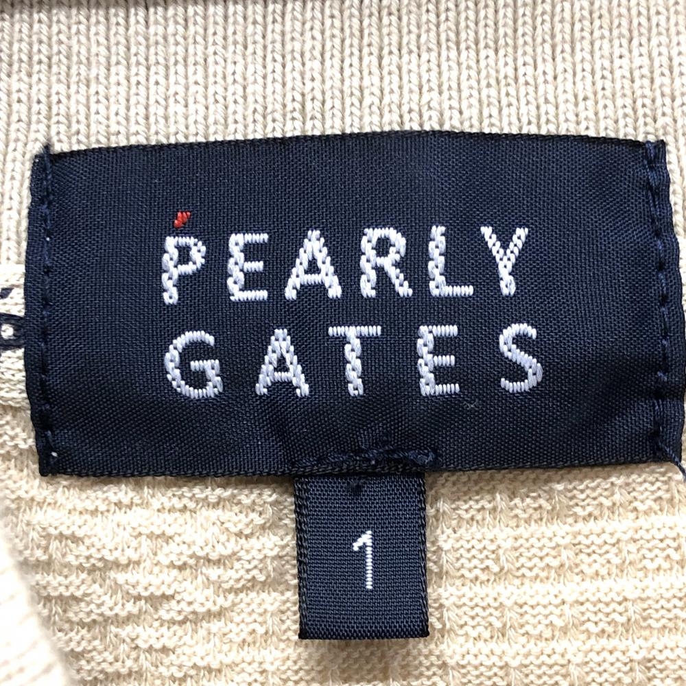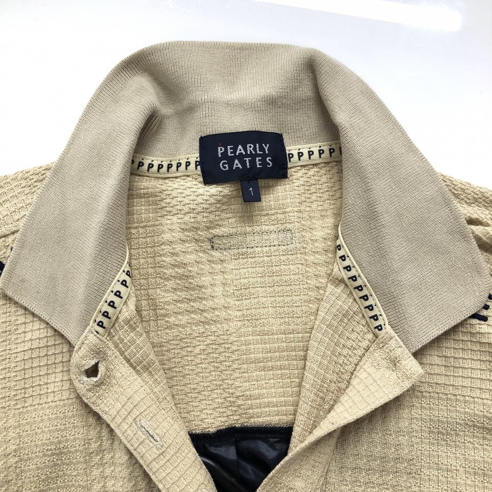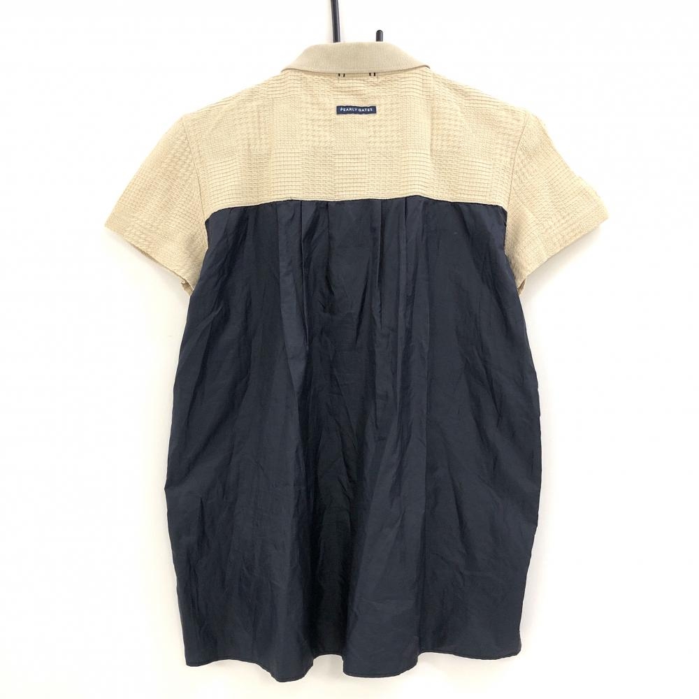 【美品】パーリーゲイツ 半袖ポロシャツ ベージュ×ネイビー 織生地 後ろ異素材 レディース 1(M) ゴルフウェア PEARLY GATES