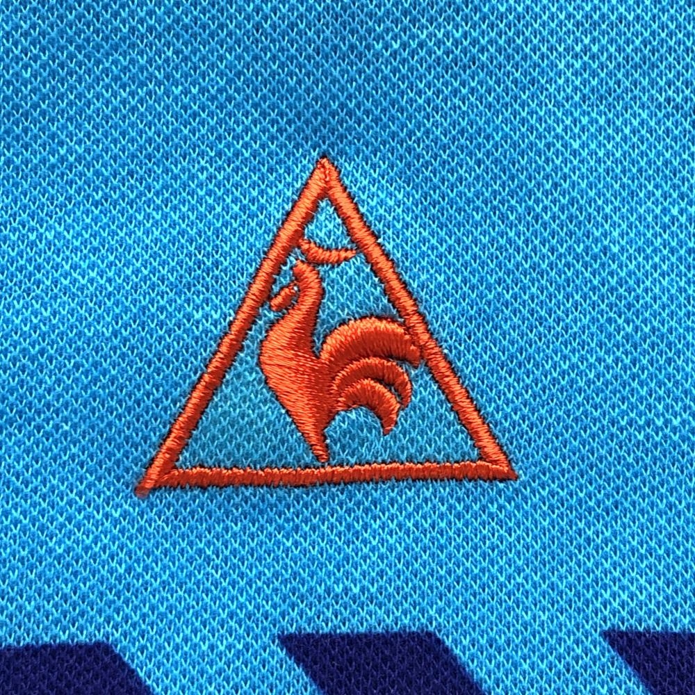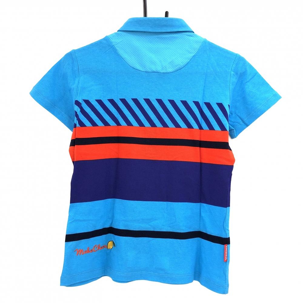 【超美品】ルコックゴルフ 半袖ポロシャツ ライトブルー×パープル 一部ボーダー調 レディース M ゴルフウェア le coq sportif
