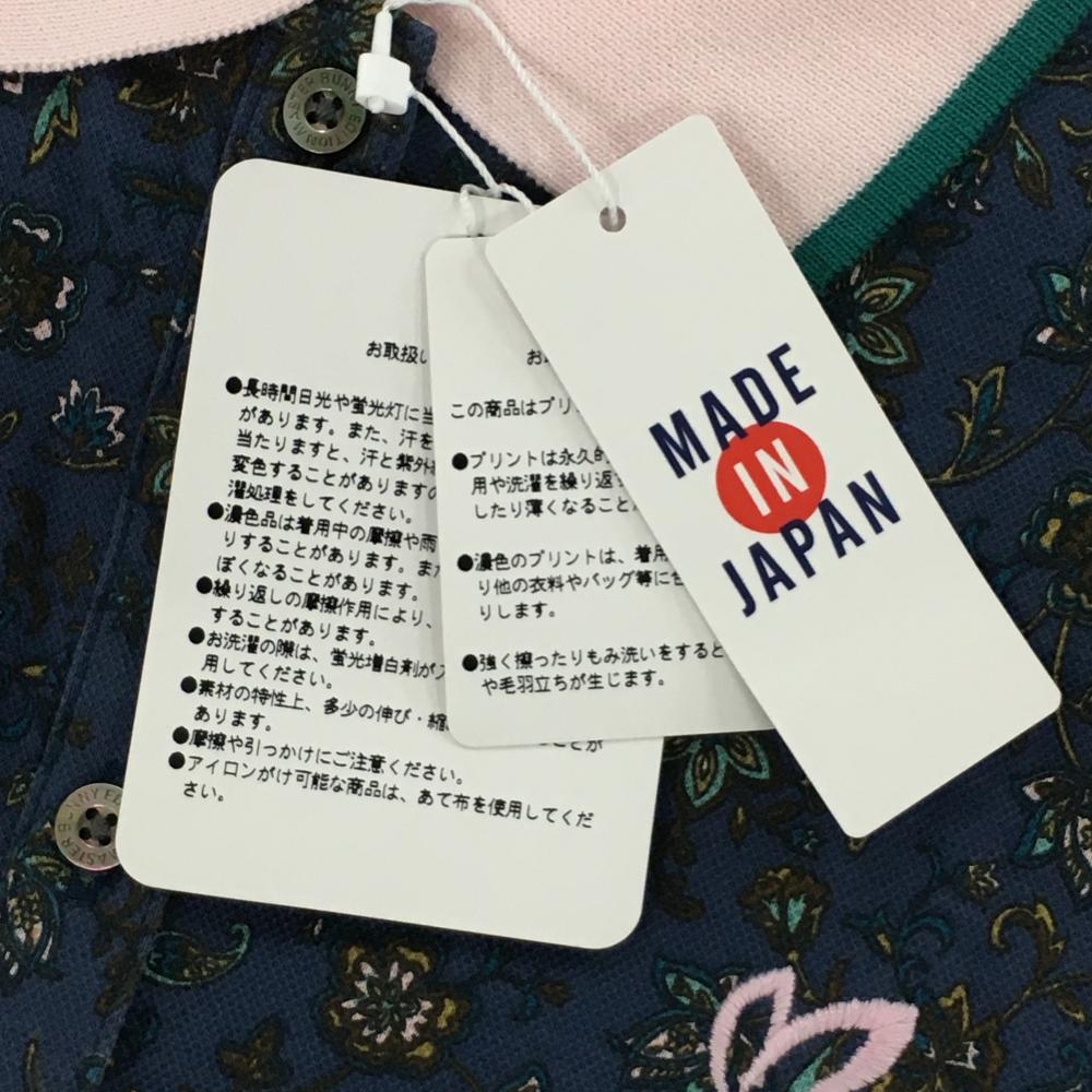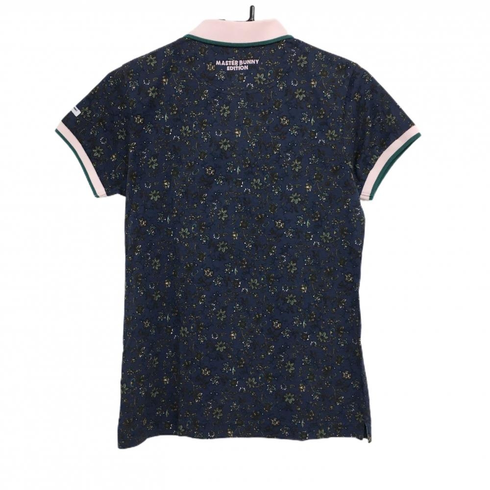【新品】マスターバニー 半袖ポロシャツ ネイビー×ブラウン系 花柄 コットン100% レディース 1(M) ゴルフウェア MASTER BUNNY EDITION