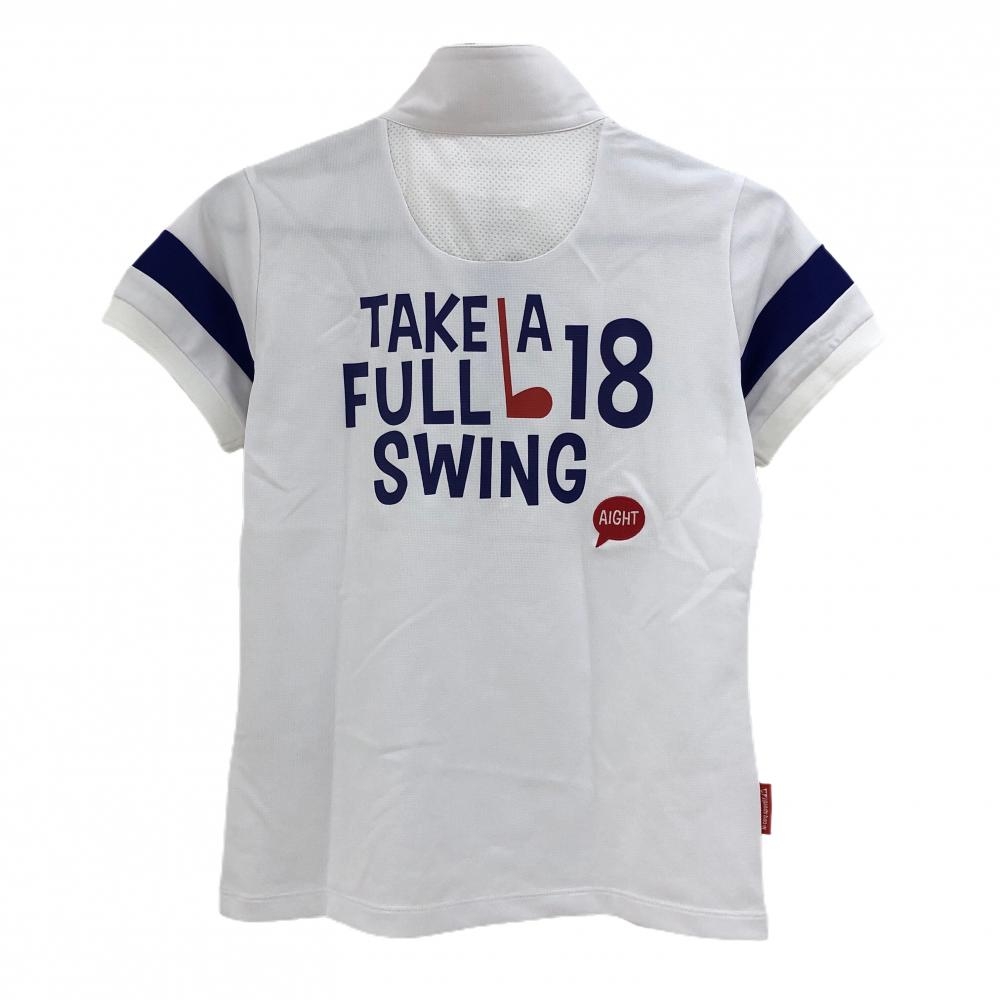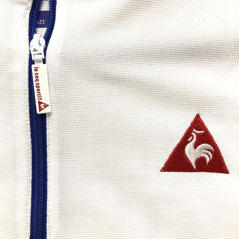 【超美品】ルコックゴルフ 半袖ポロシャツ 白×ネイビー ハーフジップ ロゴ刺しゅう レディース M ゴルフウェア le coq sportif