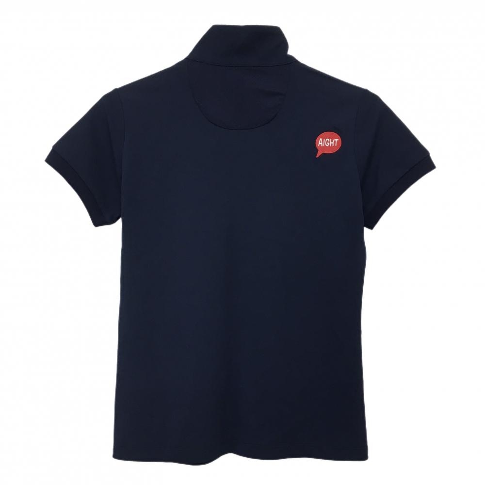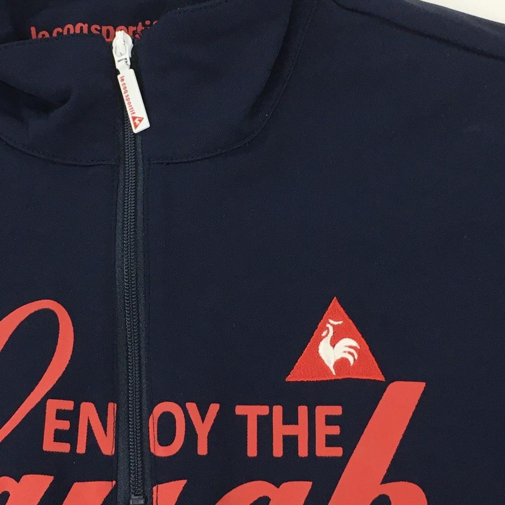 【超美品】ルコックゴルフ 半袖ハイネックシャツ ネイビー×レッド ハーフジップ ロゴ刺しゅう レディース M ゴルフウェア le coq sportif
