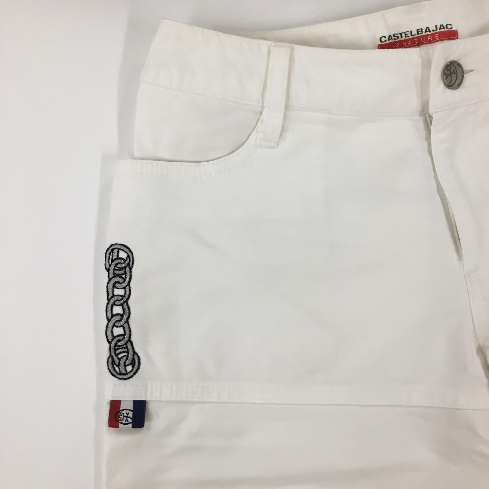 【美品】カステルバジャック ハーフパンツ 白 裾スリットトリコロール レディース 7 ゴルフウェア CASTELBAJAC