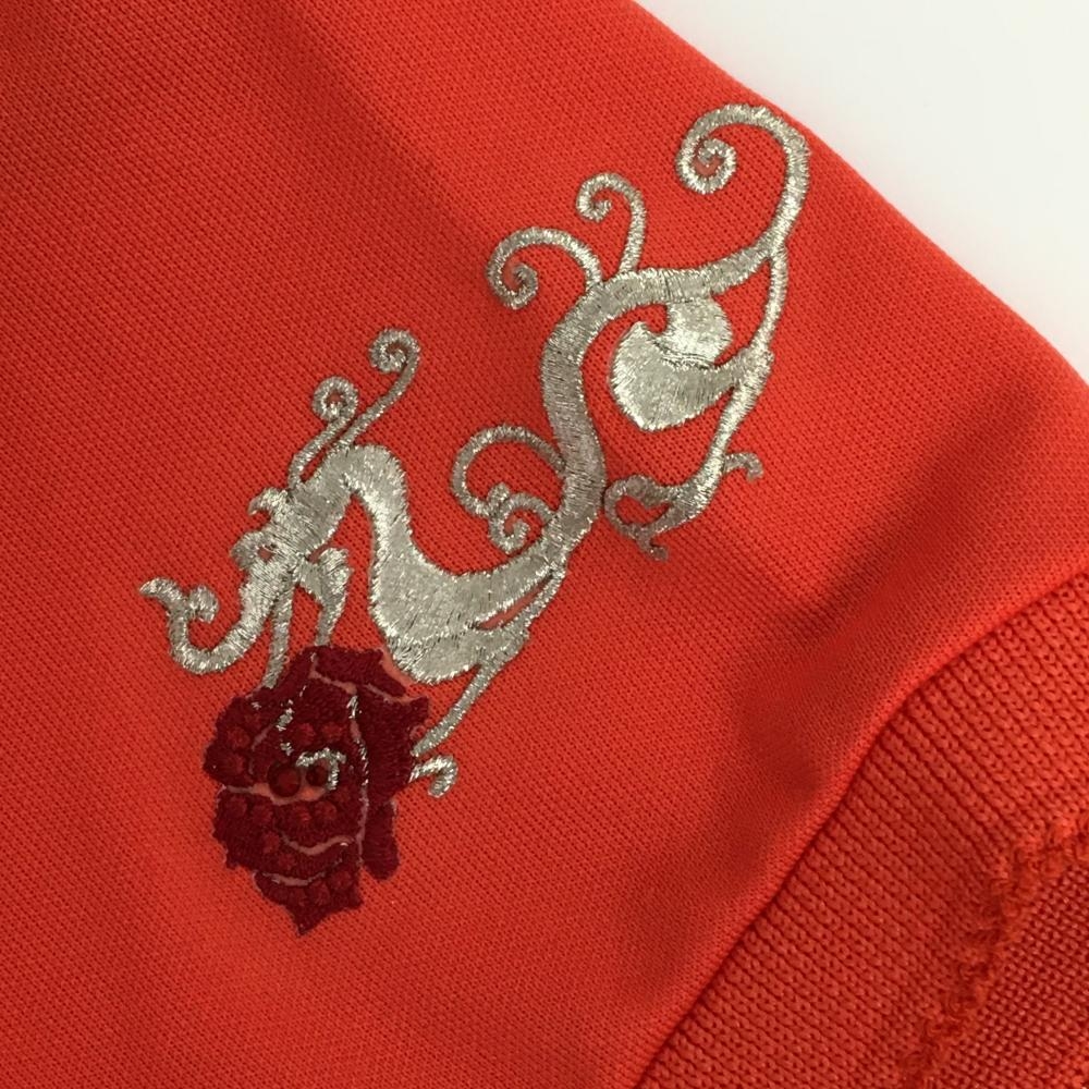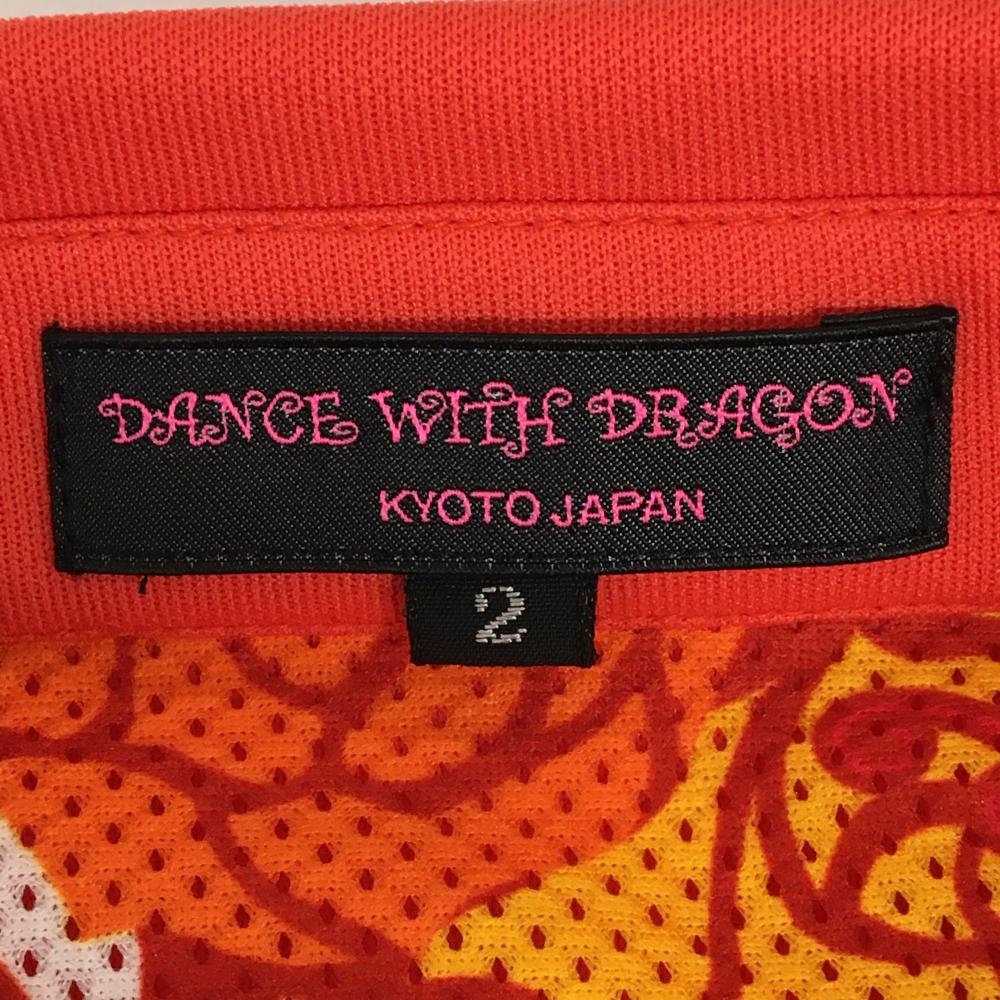 【美品】ダンスウィズドラゴン 半袖ポロシャツ レッド 袖刺しゅう レディース 2(M) ゴルフウェア Dance With Dragon