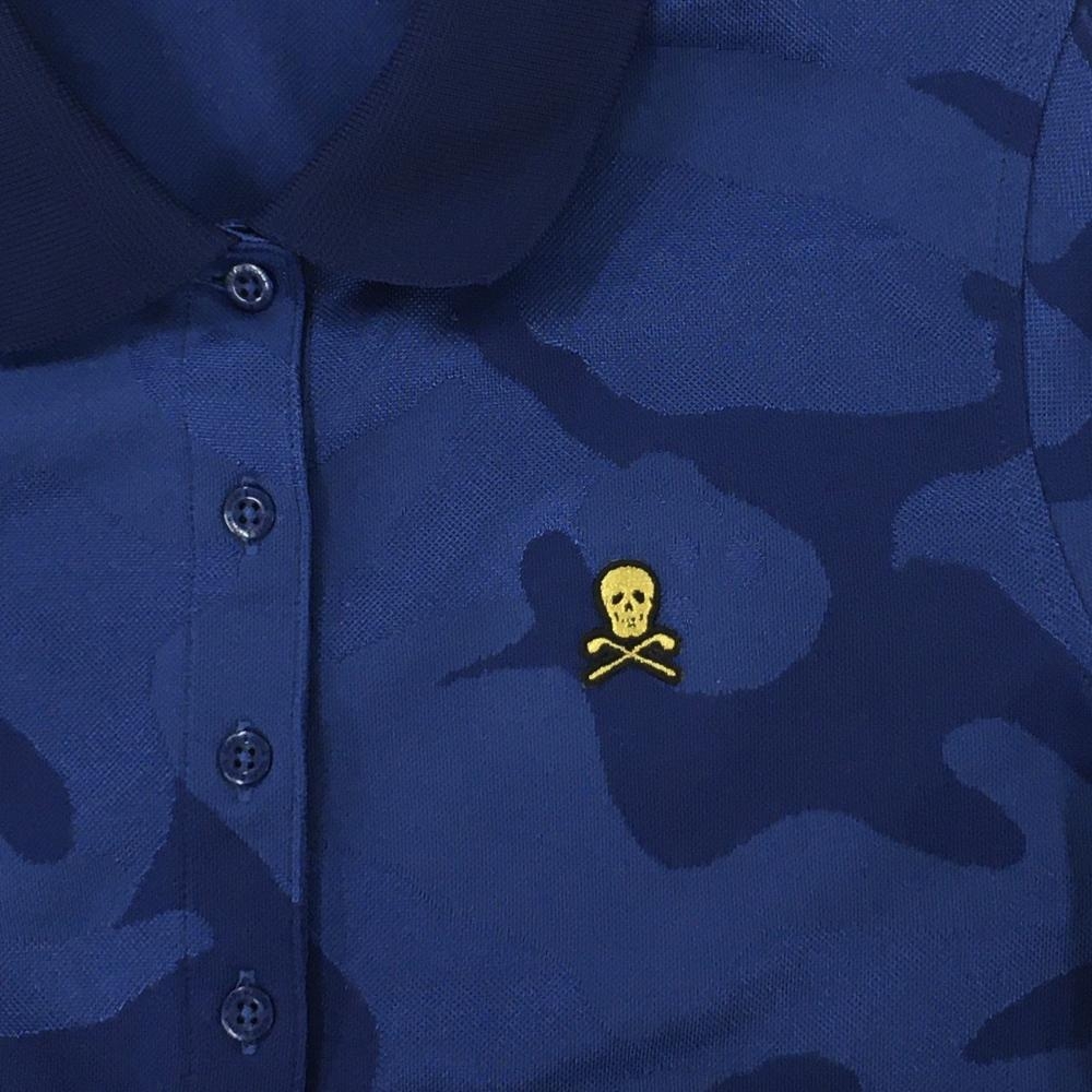 マークアンドロナ 半袖ポロシャツ ネイビー 迷彩 カモフラ スカル レディース 38(M) ゴルフウェア MARK&LONA