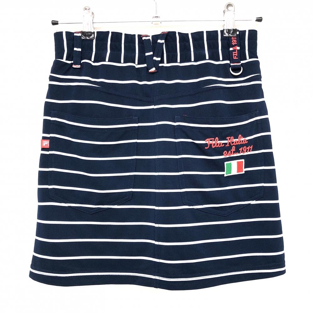 【超美品】フィラゴルフ スカート ネイビー×白 ボーダー ストレッチ 内側インナーパンツ レディース S ゴルフウェア FILA GOLF