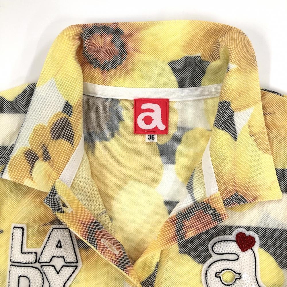 【美品】アルチビオ ノースリーブポロシャツ イエロー×白 花柄 レディース 36(S) ゴルフウェア archivio