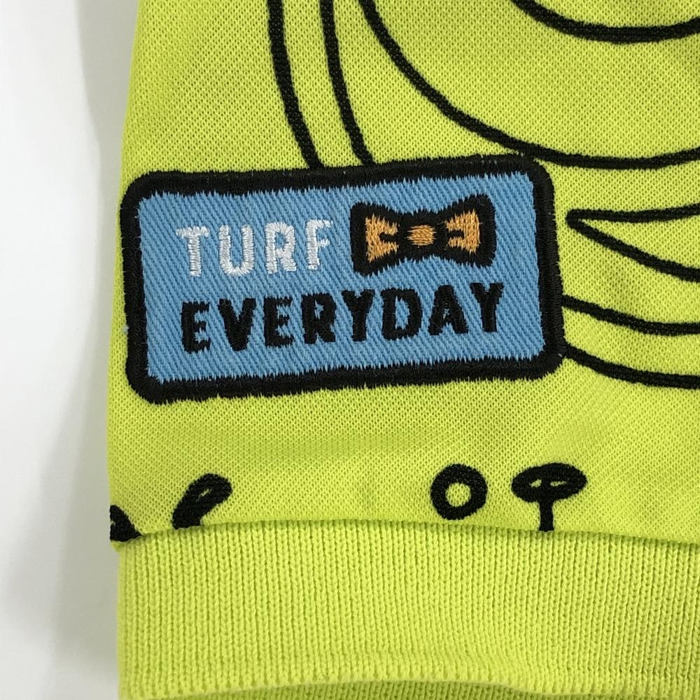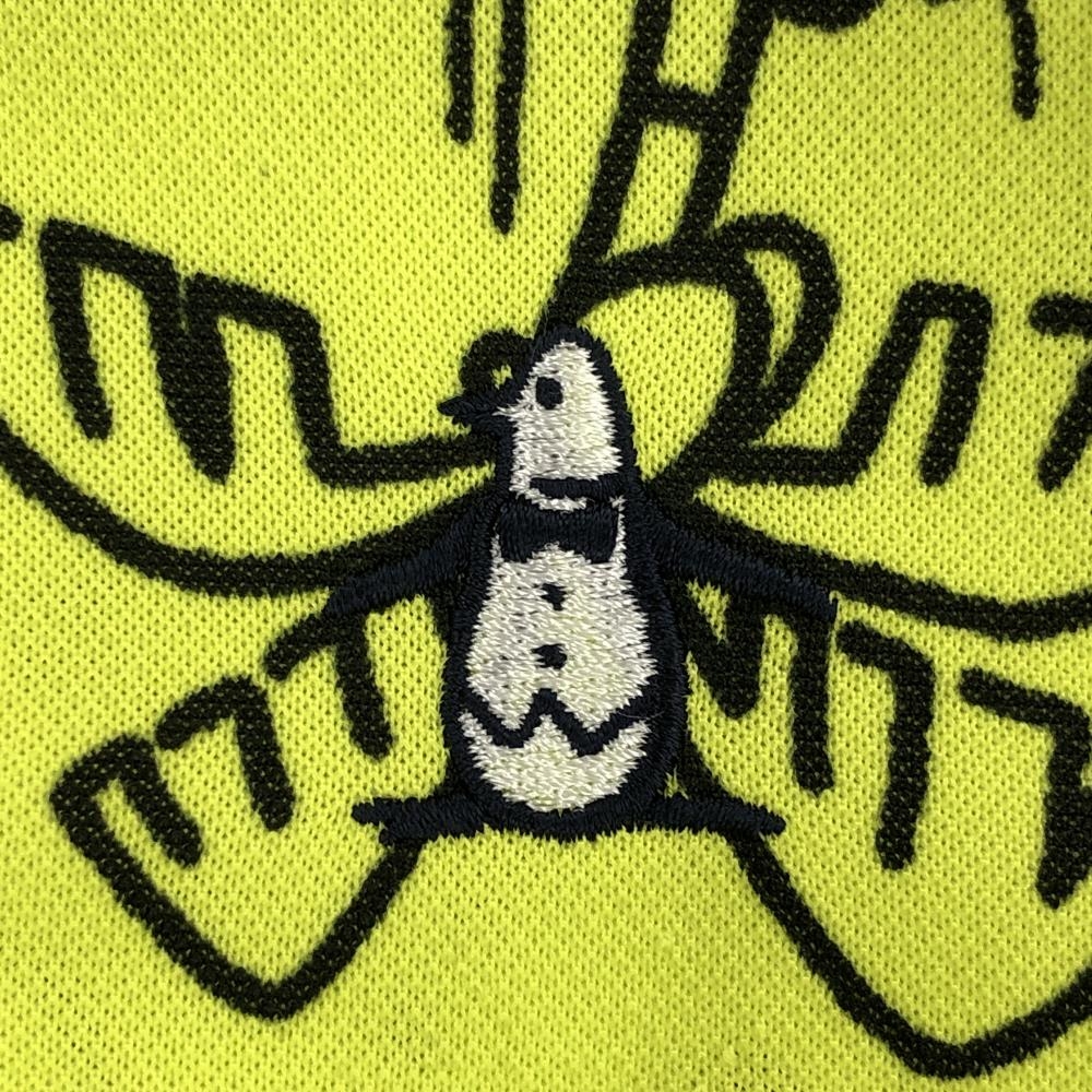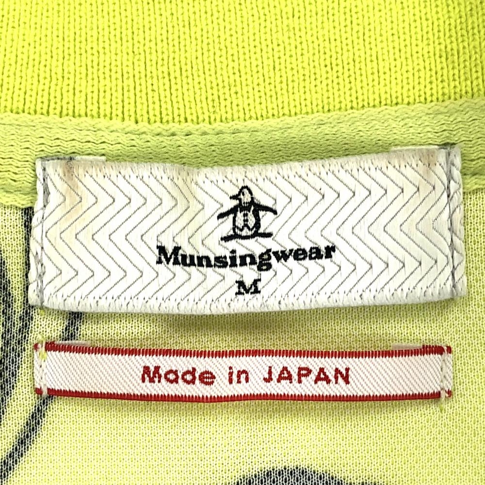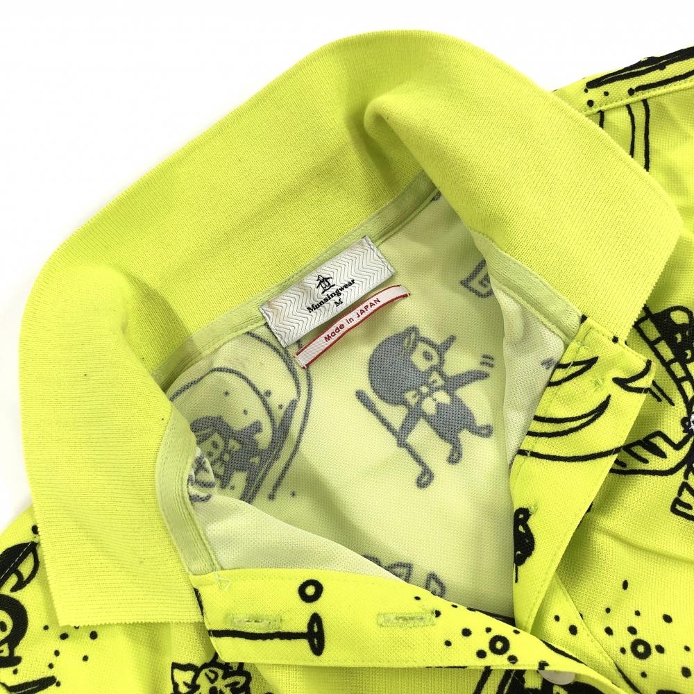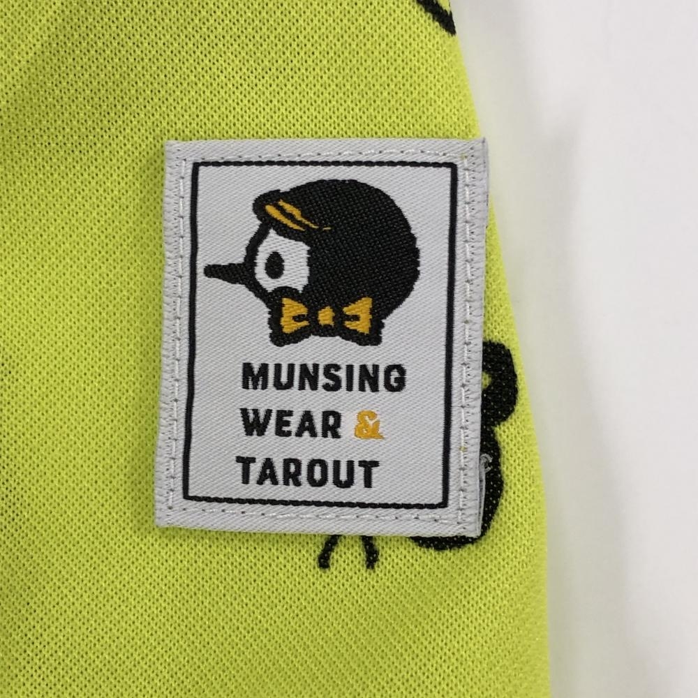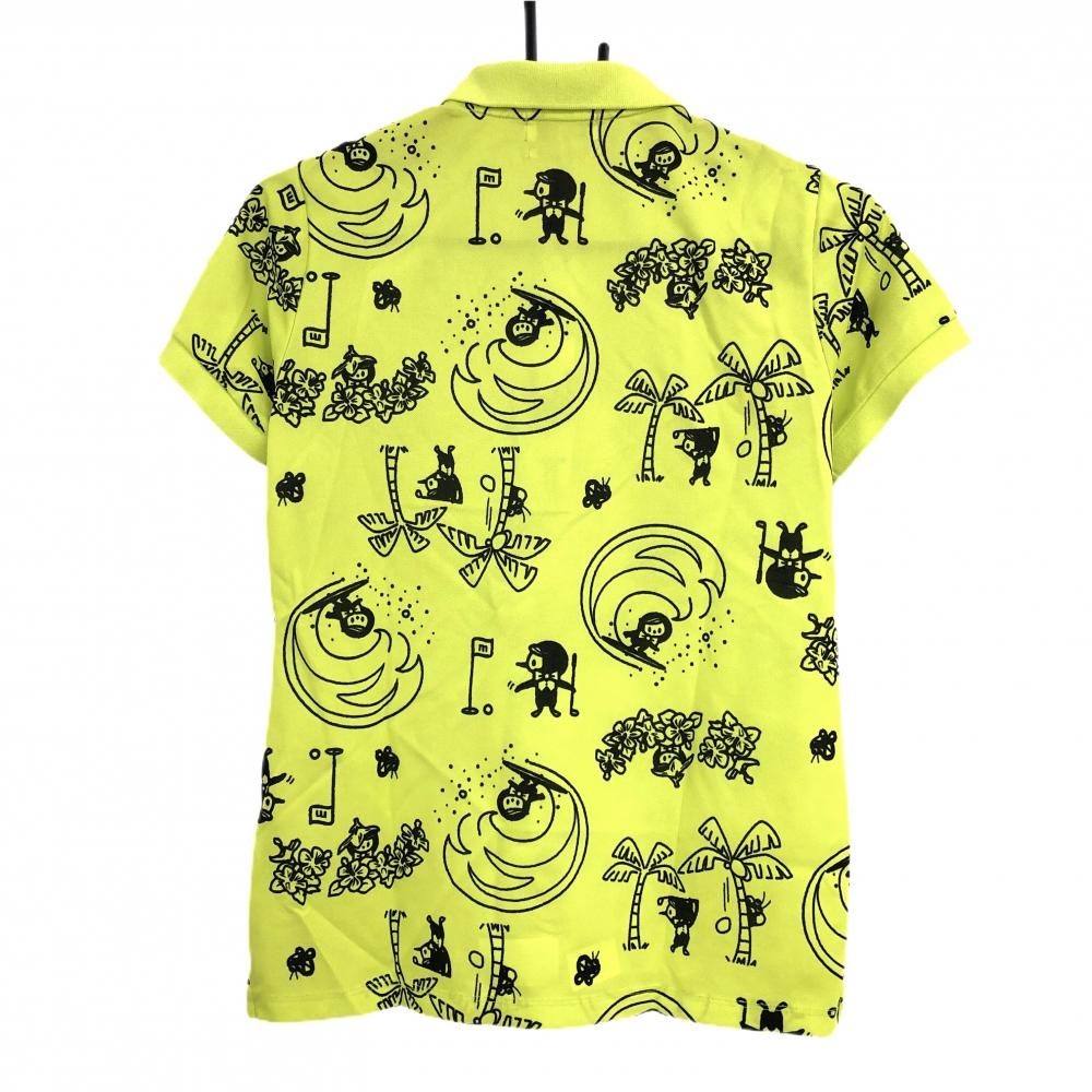 マンシングウェア 半袖ポロシャツ 蛍光イエロー×黒 ヤシの木柄 リトルピート レディース M ゴルフウェア Munsingwear