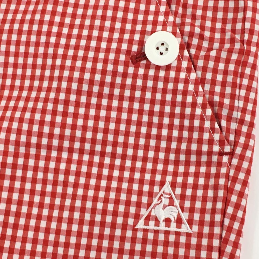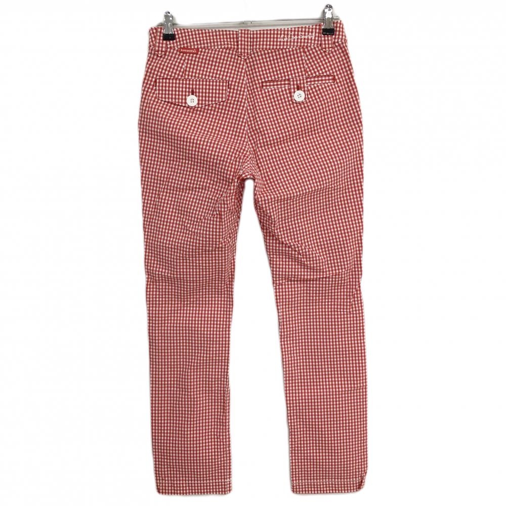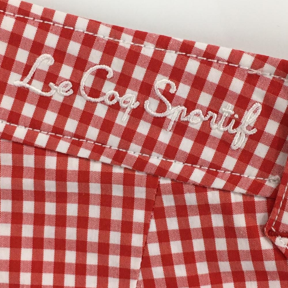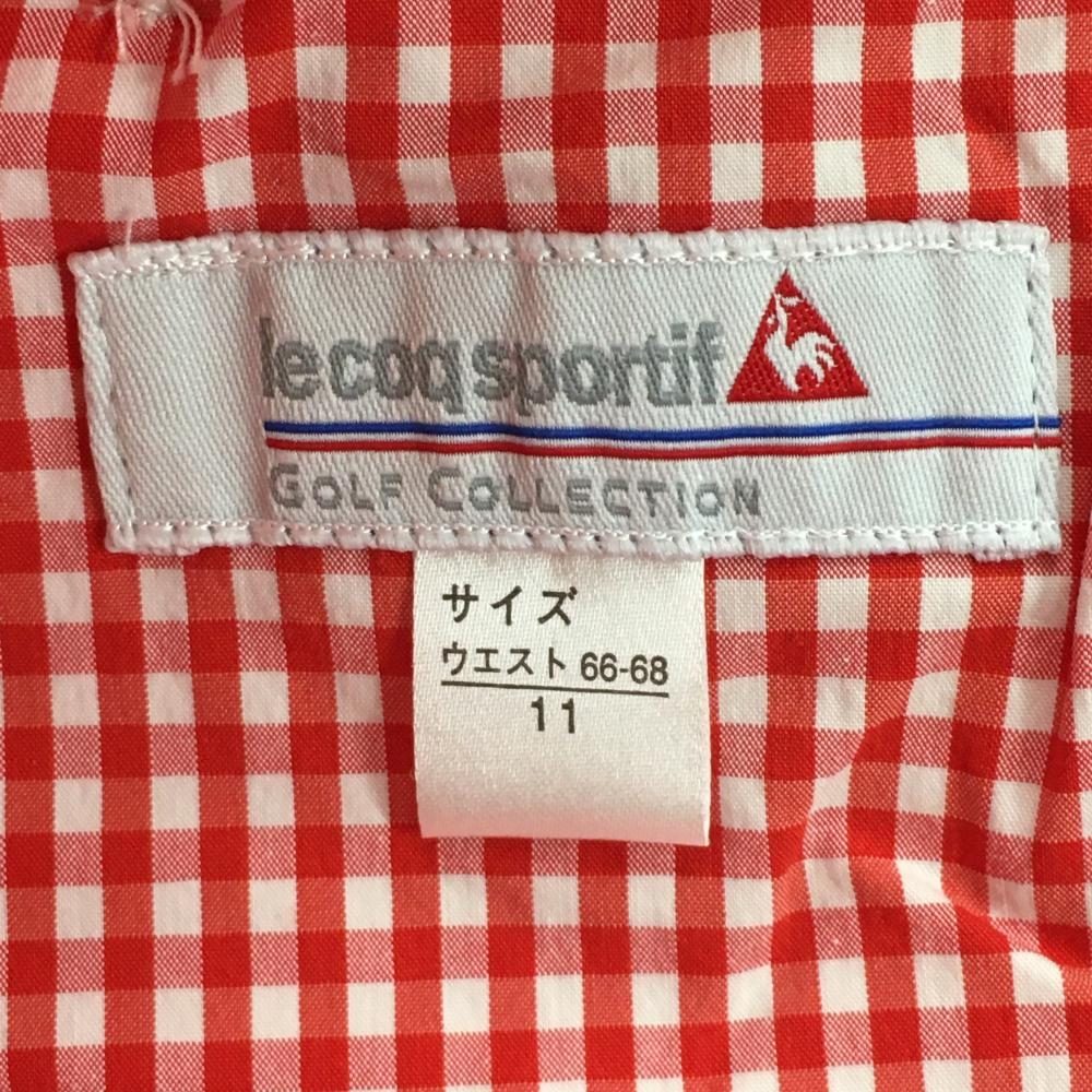 【超美品】ルコックゴルフ パンツ 白×レッド ギンガムチェック ウエスト内側花柄 ストレッチ レディース 11 ゴルフウェア le coq sportif