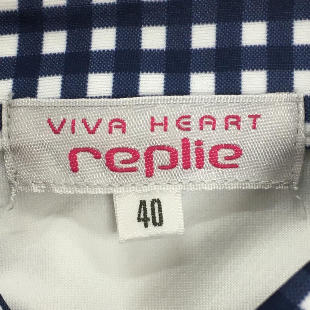 【超美品】ビバハート 長袖ポロシャツ 白×ネイビー 一部ギンガムチェック レプリエ レディース 40(M) ゴルフウェア VIVA HEART