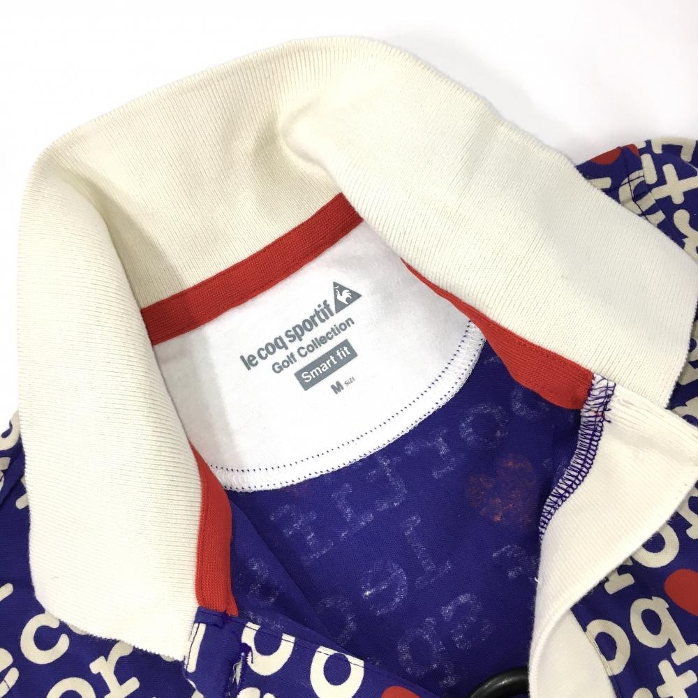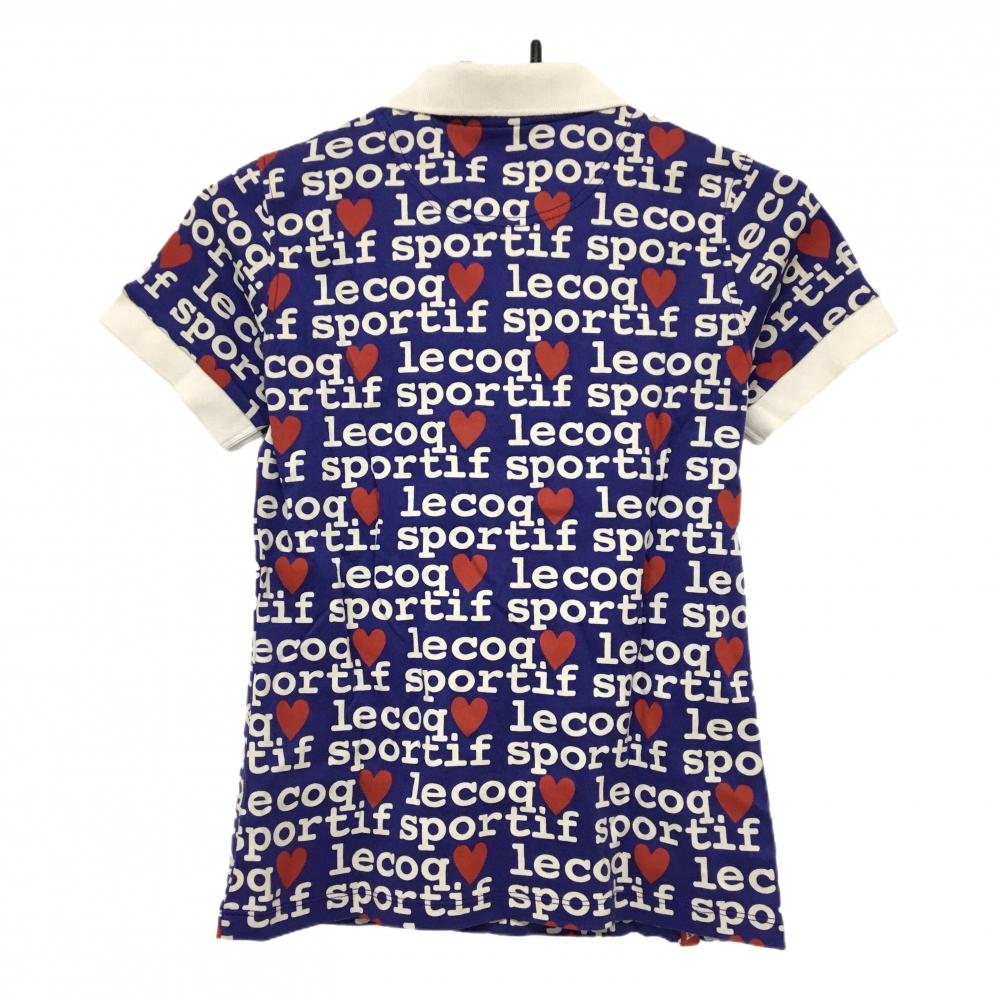ルコックゴルフ 半袖ポロシャツ パープル×白 ロゴ総柄 ハート レディース M ゴルフウェア le coq sportif