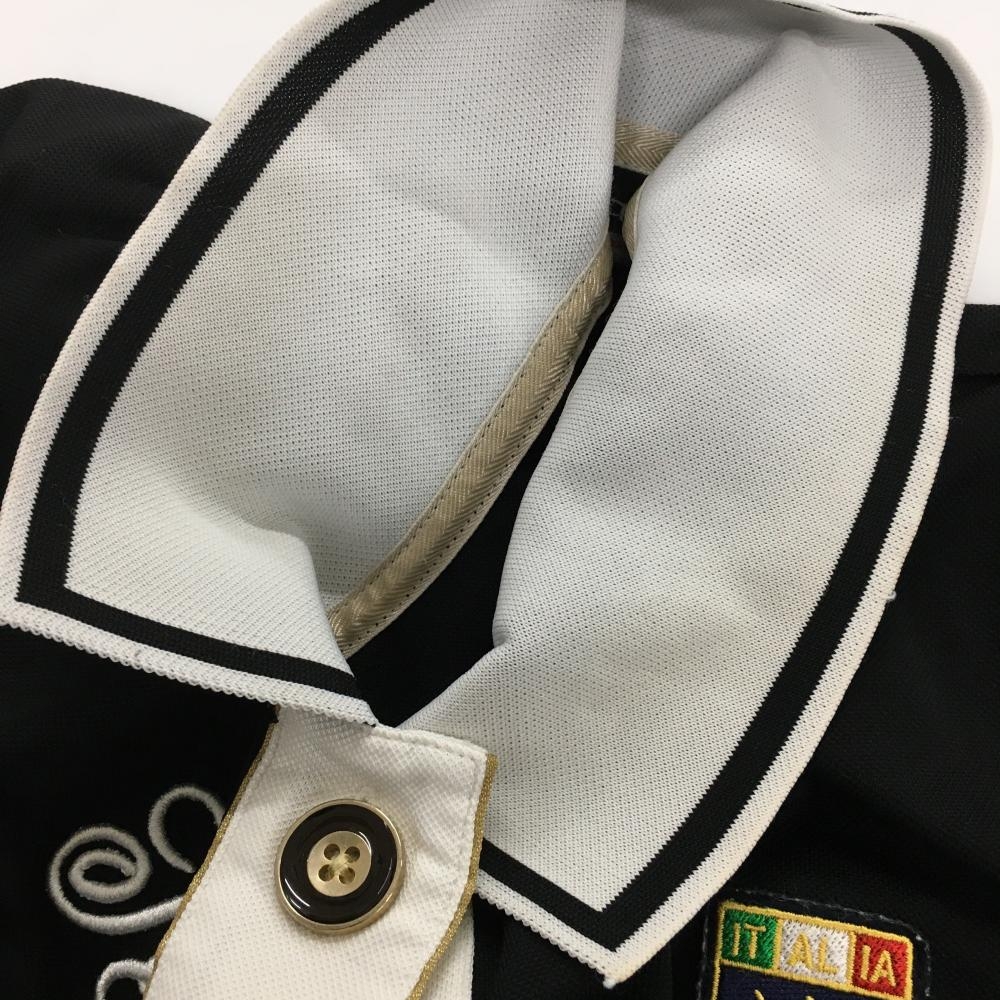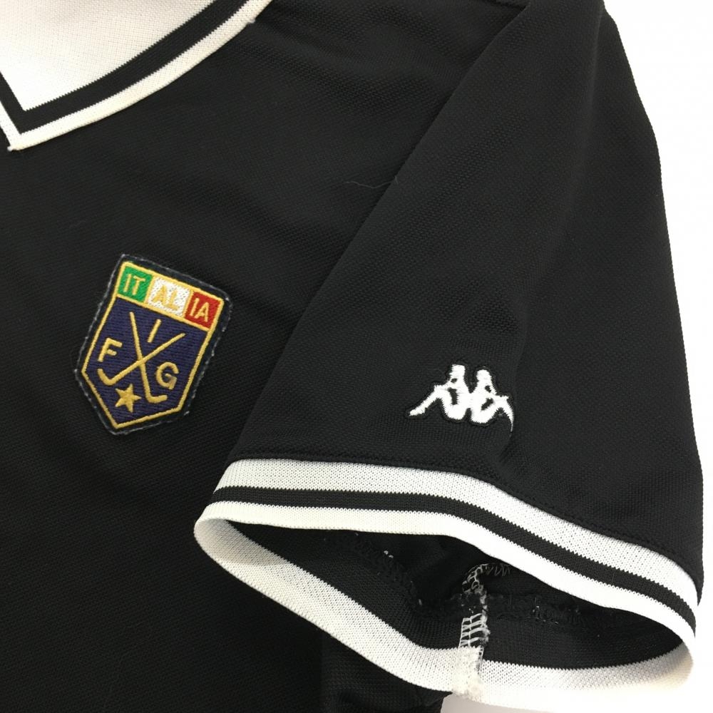 カッパ 半袖ポロシャツ 黒×白 襟袖口ライン レディース M ゴルフウェア Kappa