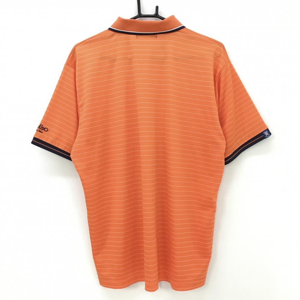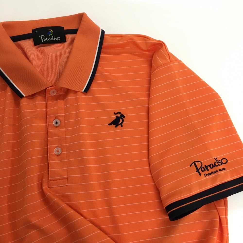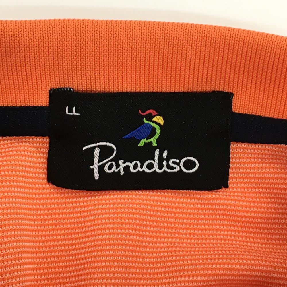 【美品】パラディーゾ 半袖ポロシャツ オレンジ×白 ボーダー ロゴ刺しゅう メンズ LL ゴルフウェア Paradiso