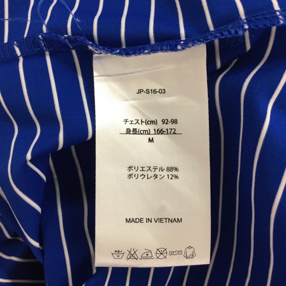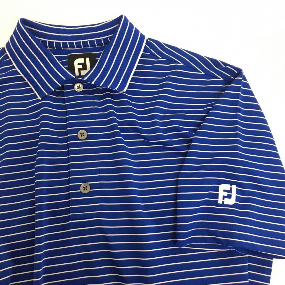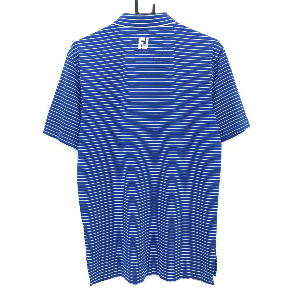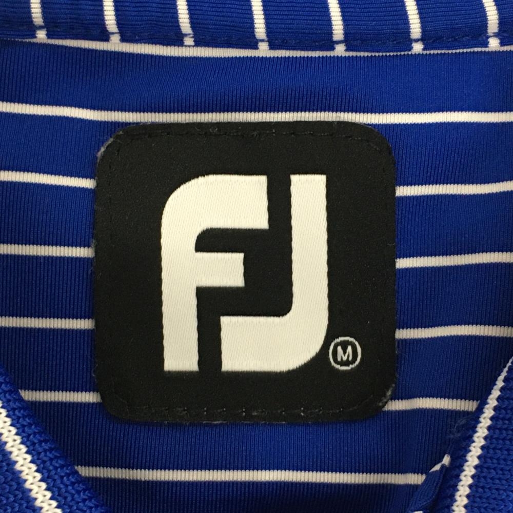 【超美品】フットジョイ 半袖ポロシャツ ブルー×白 ボーダー 袖ロゴ刺しゅう メンズ M ゴルフウェア FootJoy